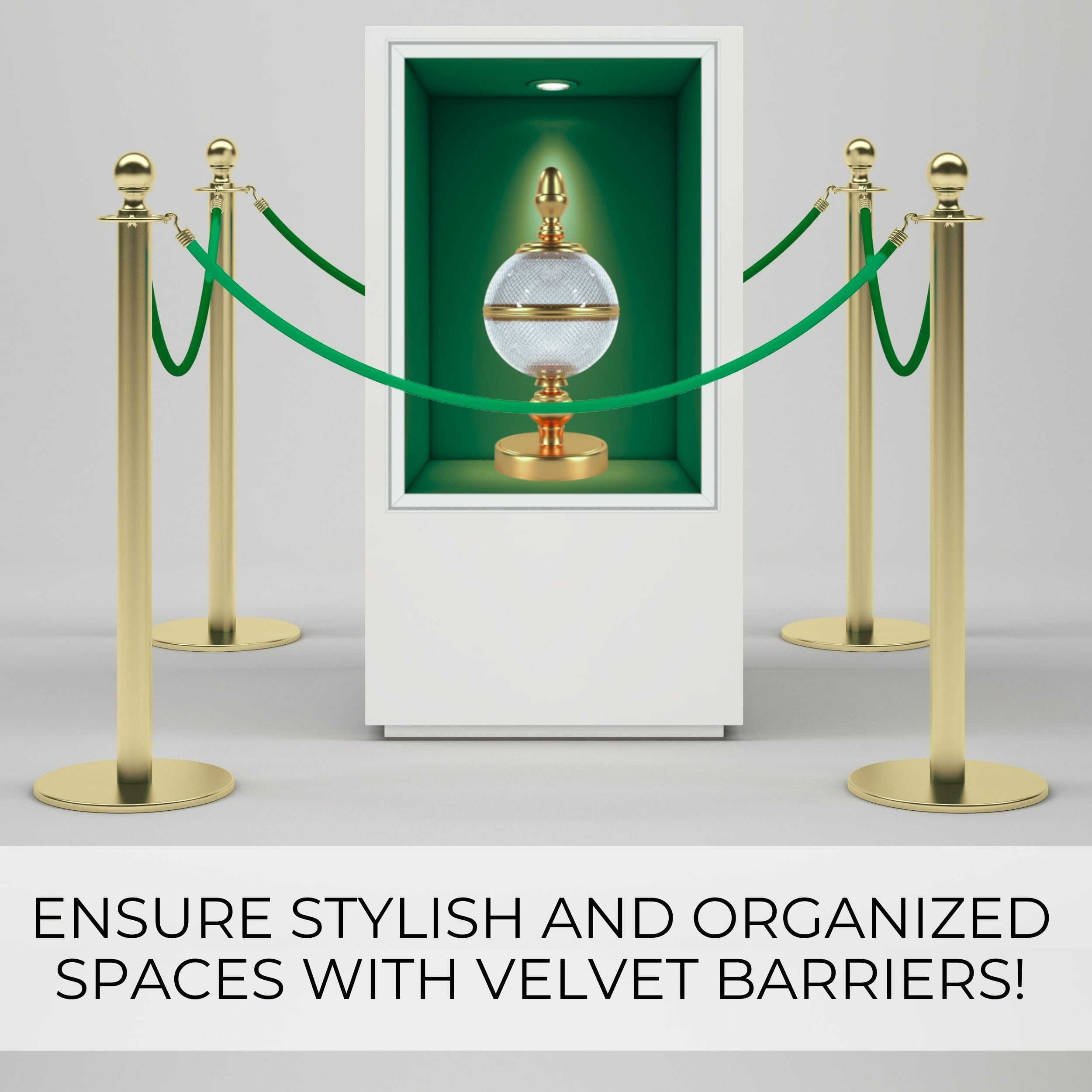 Enhance the prestige of your event with this green stanchion rope set of 4, specifically designed for red carpet occasions. Perfect vip rope for VIP events, parties, and formal gatherings. Elegant green color makes this stanchion velvet rope the perfect choice for barrier stands