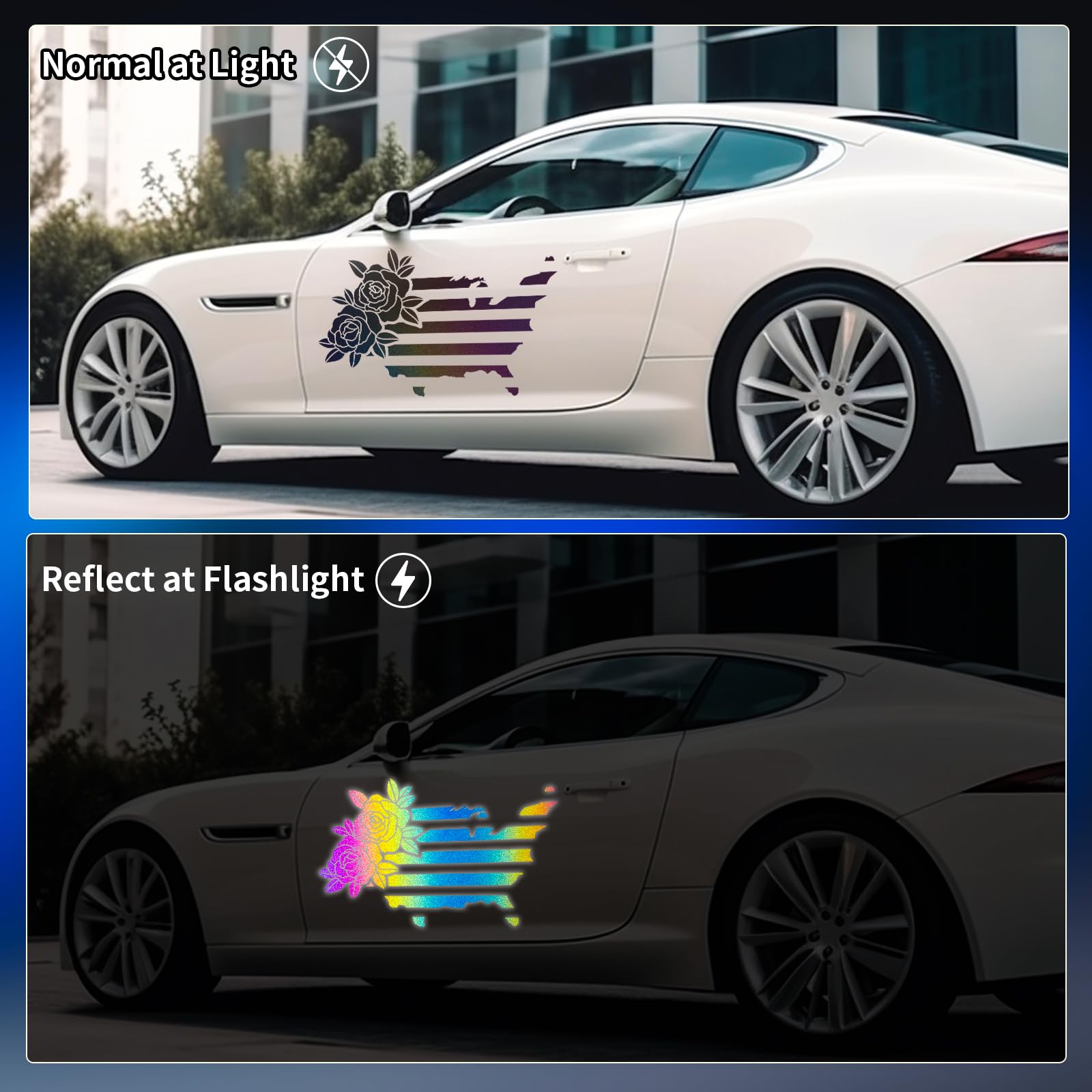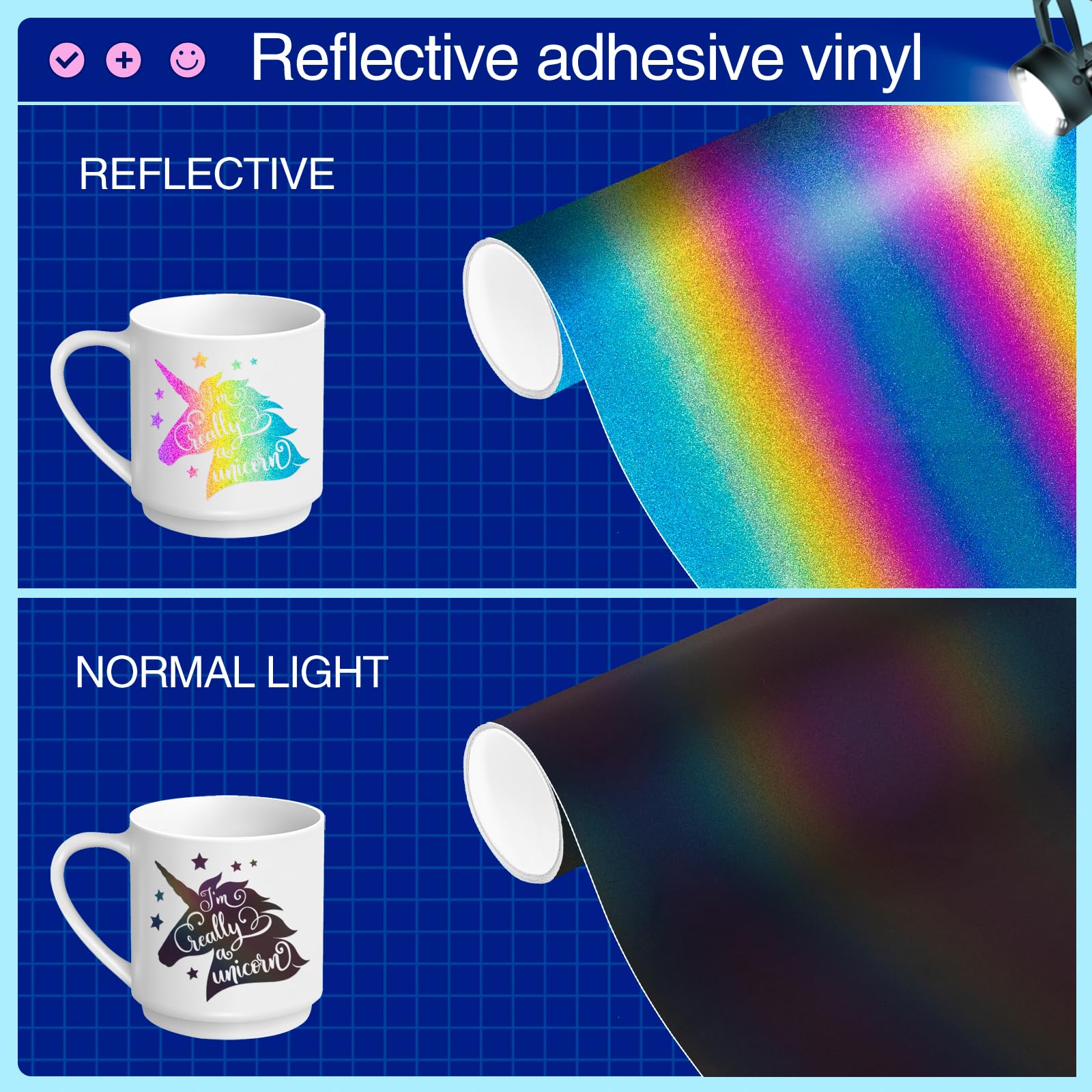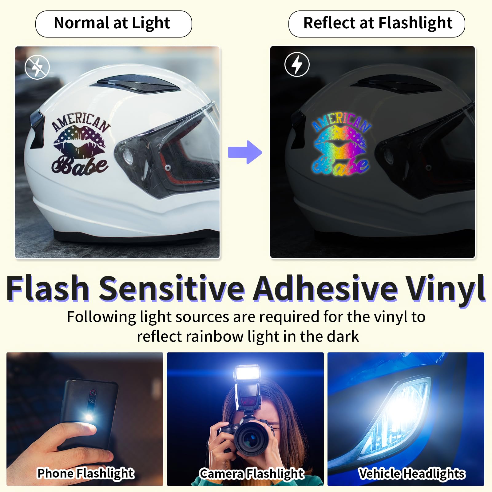 đĄăReflective Adhesive Vinylă: âIt shows pure color under the normal light. But under the reflection of the flash and glare of the phone, it starts to show rainbow color. The stronger the light, the more it reflects the rainbow.