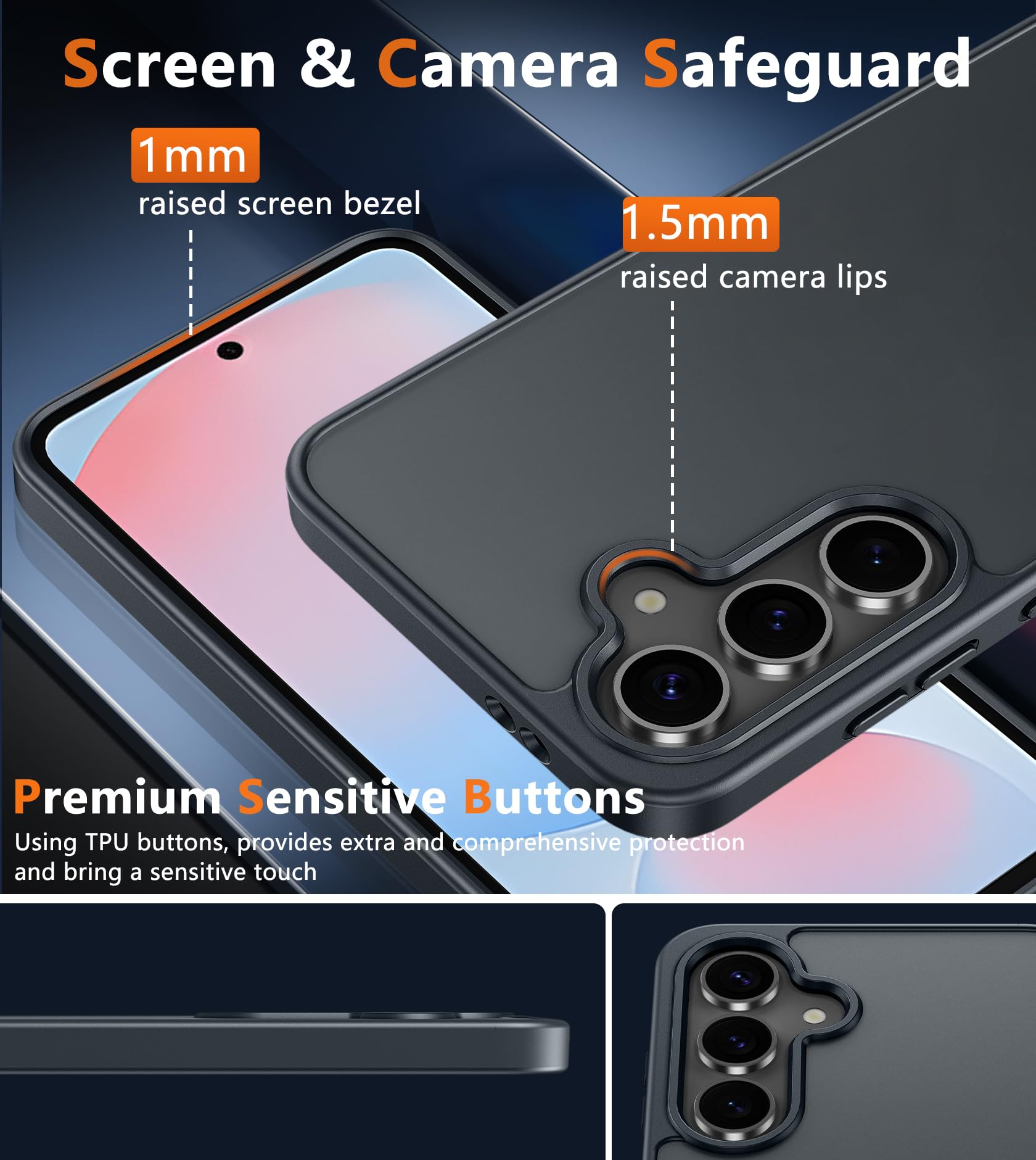 Raised Camera & Screen Protection: The tiny design of 2.5 mm bezels over the camera, 1.5 mm bezels over the screen provides extra and comprehensive protection, even if the phone is dropped, can minimize and reduce scratches and bumps on the phone