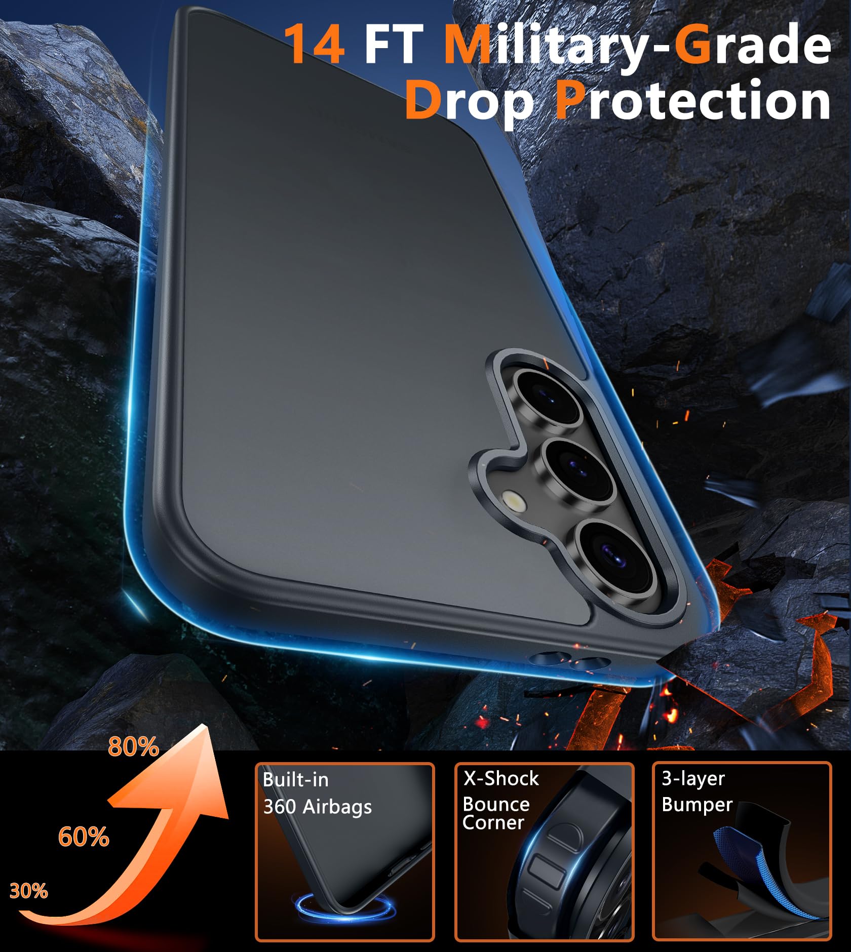 Military Grade Protection: This Case backplane is made with rigid polycarbonate and flexible shockproof TPU bumpers around the edge and features 4 built-in corner Airbags to absorb impact, which can prevent your Phone from accidental drops, bumps, and scratches