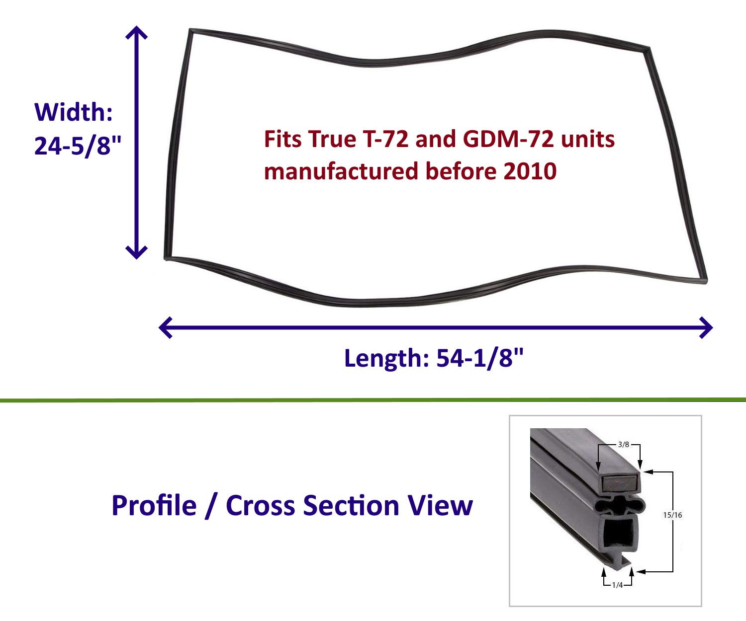 Passeal - True 810802 Compatible Door Gasket Replacement - Fits True GDM-72/T-72 Refrigerators, Freezers - Easy to Install. Custom Made in our state of the art MFG Facility