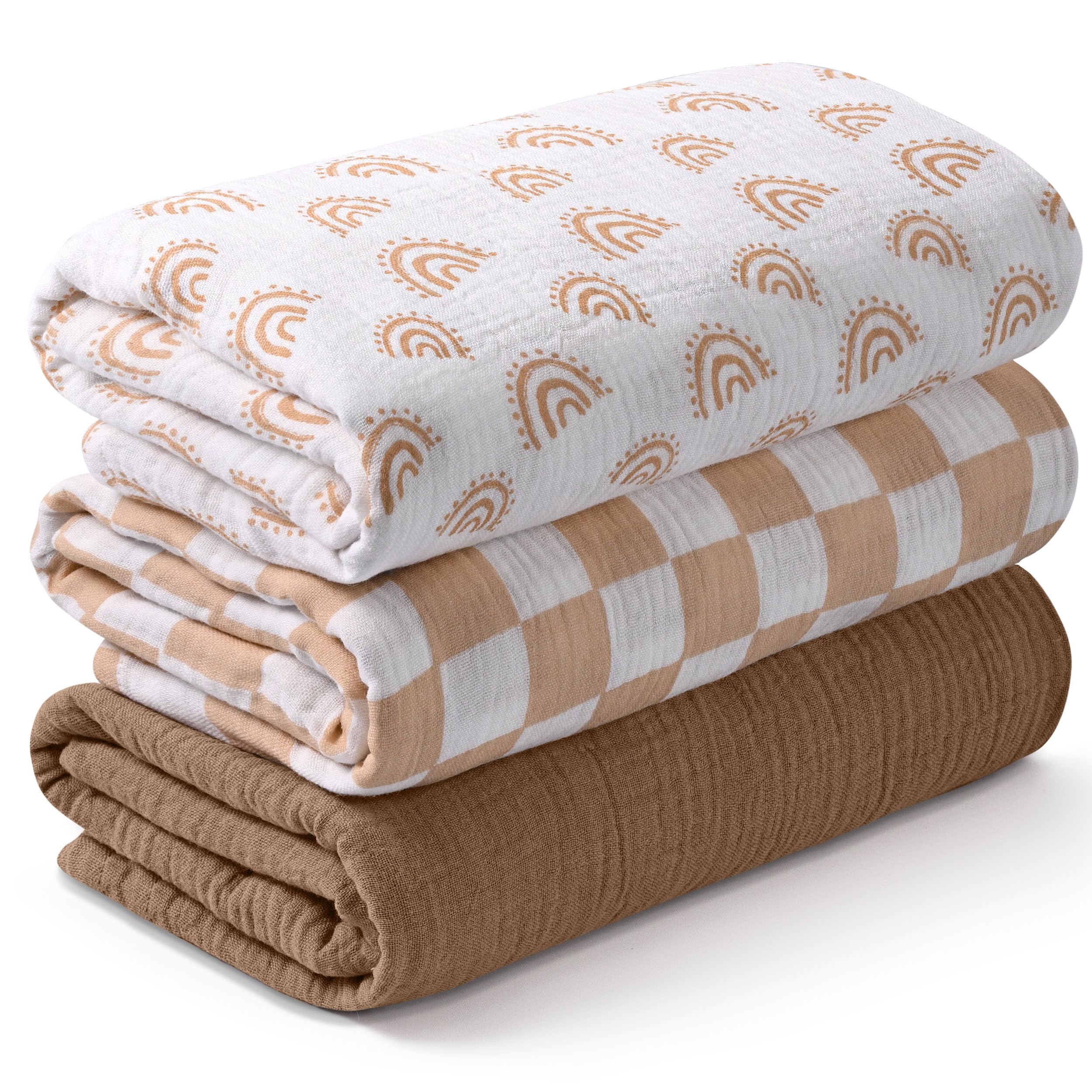 SET OF UNISEX COLORS: The package includes 3 neutral color swaddle blankets, suitable for baby boys or girls. Each piece with specifically classic prints and handpicked unisex colors that will easily match any outfit, suitable for both boys and girls! Our muslin blankets can hand wash or wash by machine with cold water and mild detergent.