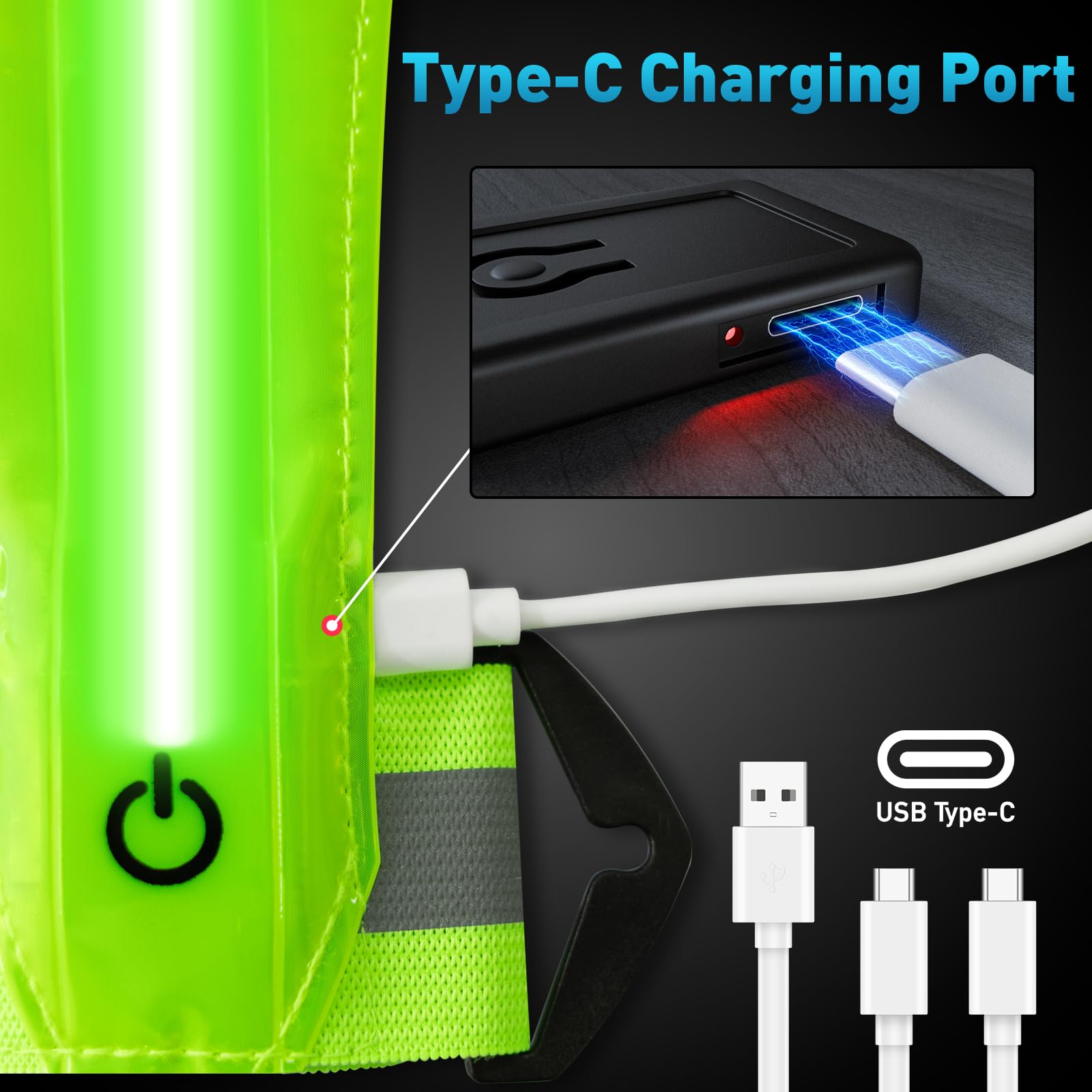 USB RECHARGEABLE LED LIGHT - 70% of pedestrian fatalities happen between 6pm & 6am. It’s a better alternative to traditional safety vests thanks to durable build-in led flash lights. 100 times safer than any other reflective bands at night.