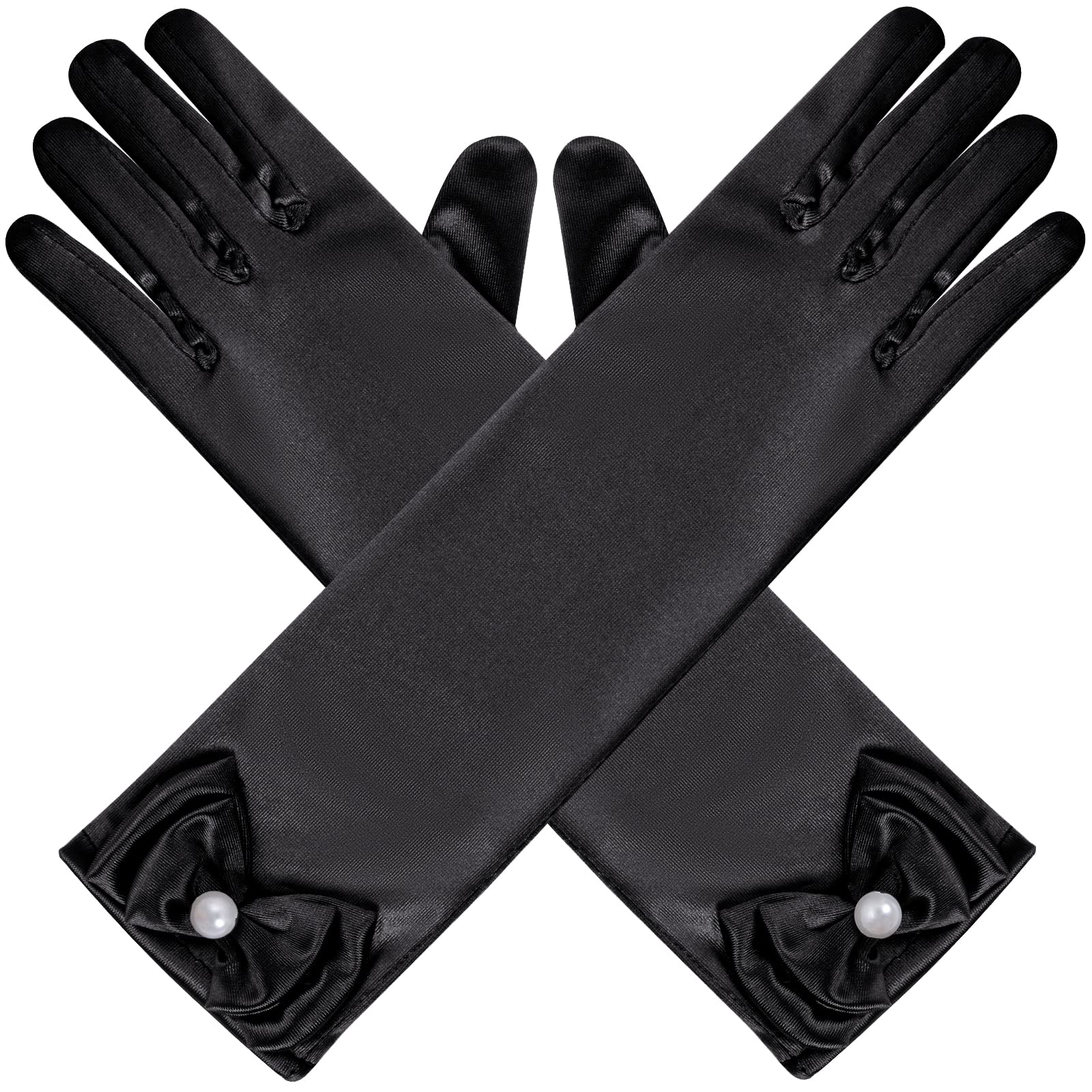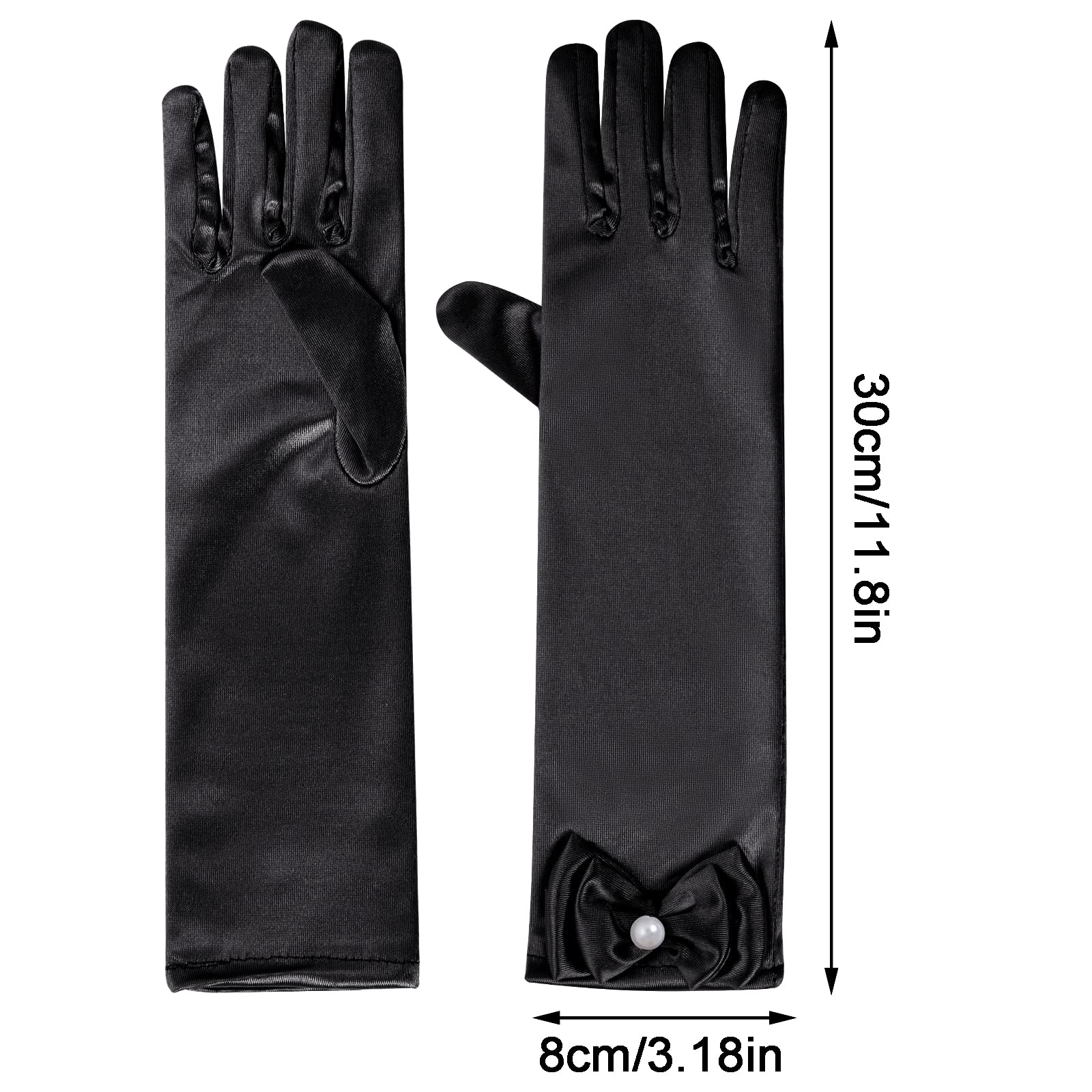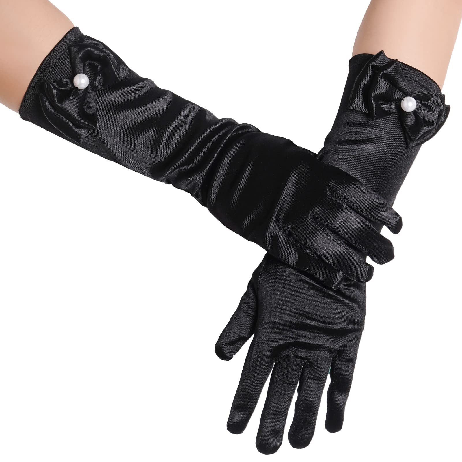 Description Features: Stretchy bow-knot girls' gloves fit children age 4 years up to 8 years old. The quality fabric is stretchable to fit a variety of sizes Easy to clean and maintain Lovely and classic gloves is a great girls accessories Suitable for little girls in Parties, Wedding, Formals Events, Performance or Costumes Package Included: 1 pair of girls gloves