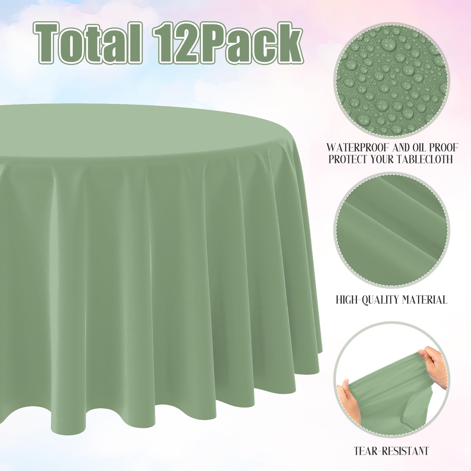 Wide Application: this sage green plastic round tablecloth could be matched with a variety of themed party decorations, which can also be served as dust sheets or table mats at birthday parties, family gatherings, baby shower, bridal shower,picnics and also perfect for daily use.