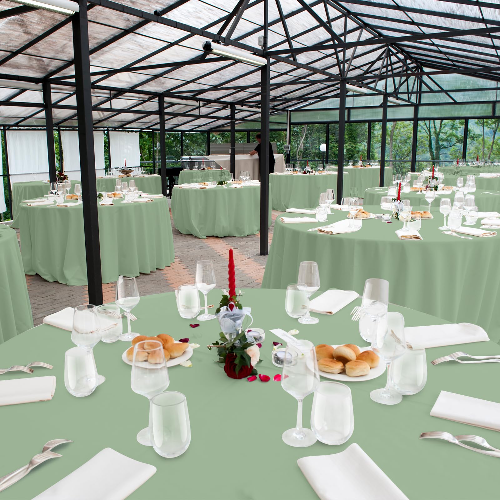 About Size : these green round table cloth each measures 84inches,which fits for most 8-10 seats circle tables,making it possible for you and your friend to enjoy the birthday party ,baby shower and wedding, bridal, engagement and other theme party .