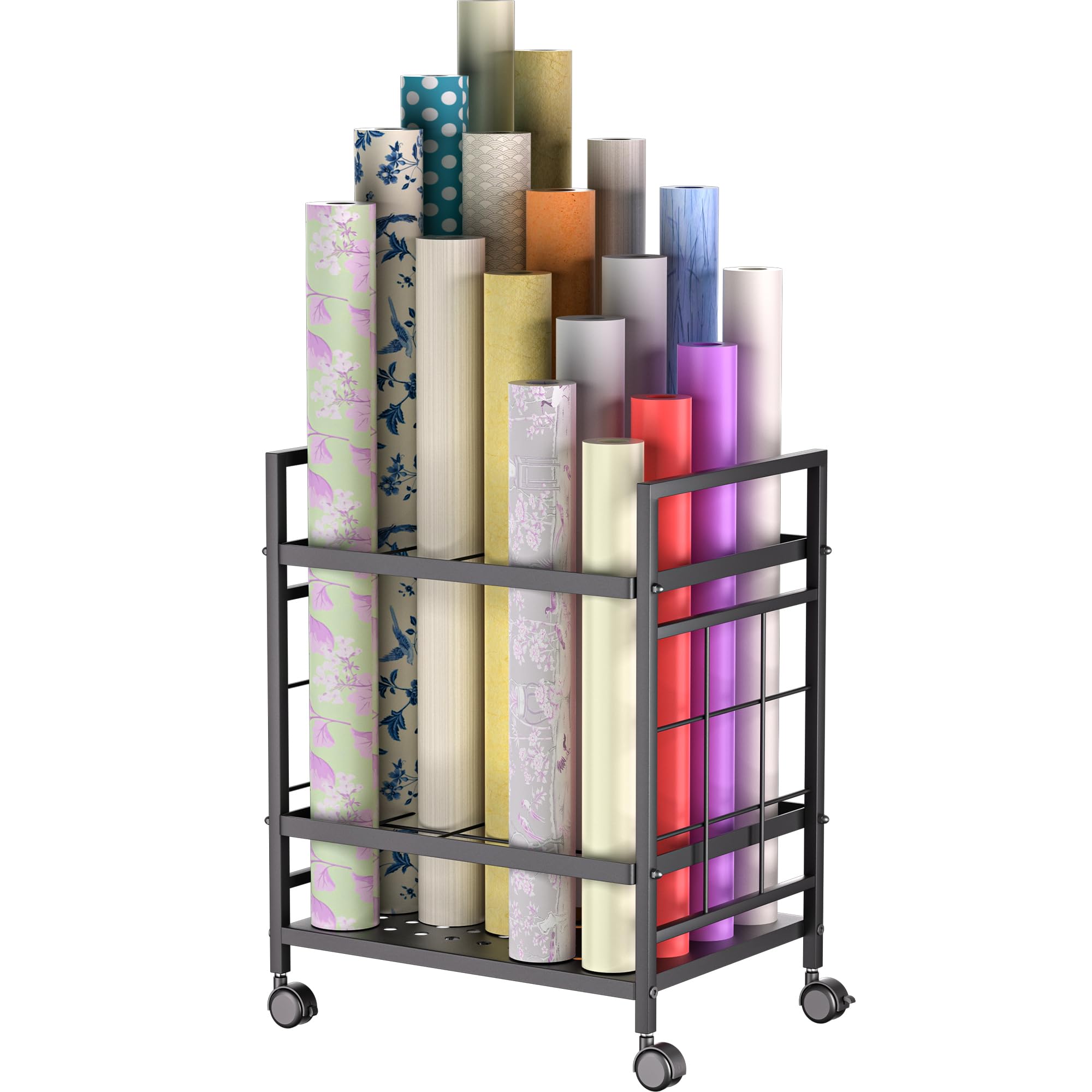 Blueprint Storage Rack, Blueprint Holder with Wheels, Used for Storing Blueprint/Carpet/Map/Poster/Architectural Construction Plan, 20 Slots(3.2" x 3.2"), Silent wheel for Home, Office, School(Black)