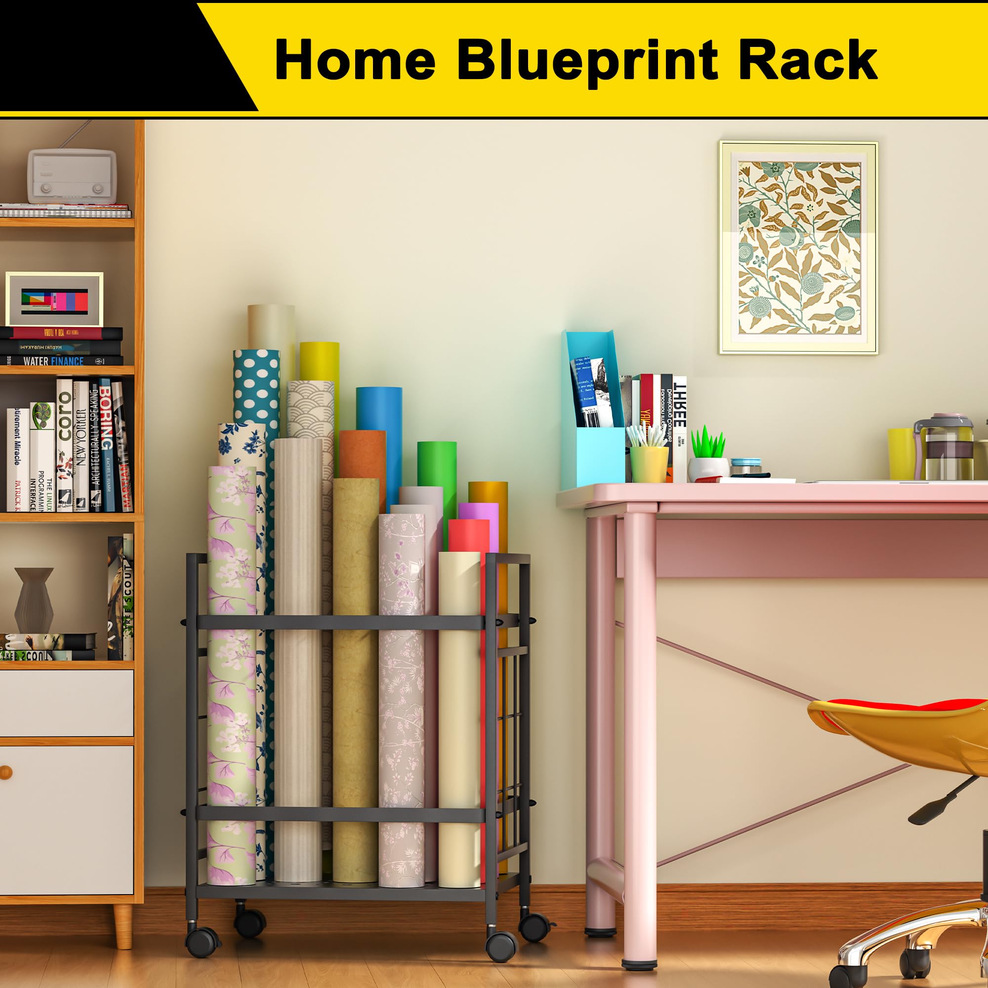 【Multi-Purpose Storage】Our map holder organizer is ideal for storing blueprints, vinyl rolls, architectural papers, roll files, maps, wrapping paper and other items. Store them in the blueprint storage rack to help you organize neatly and create a well-organized office space.
