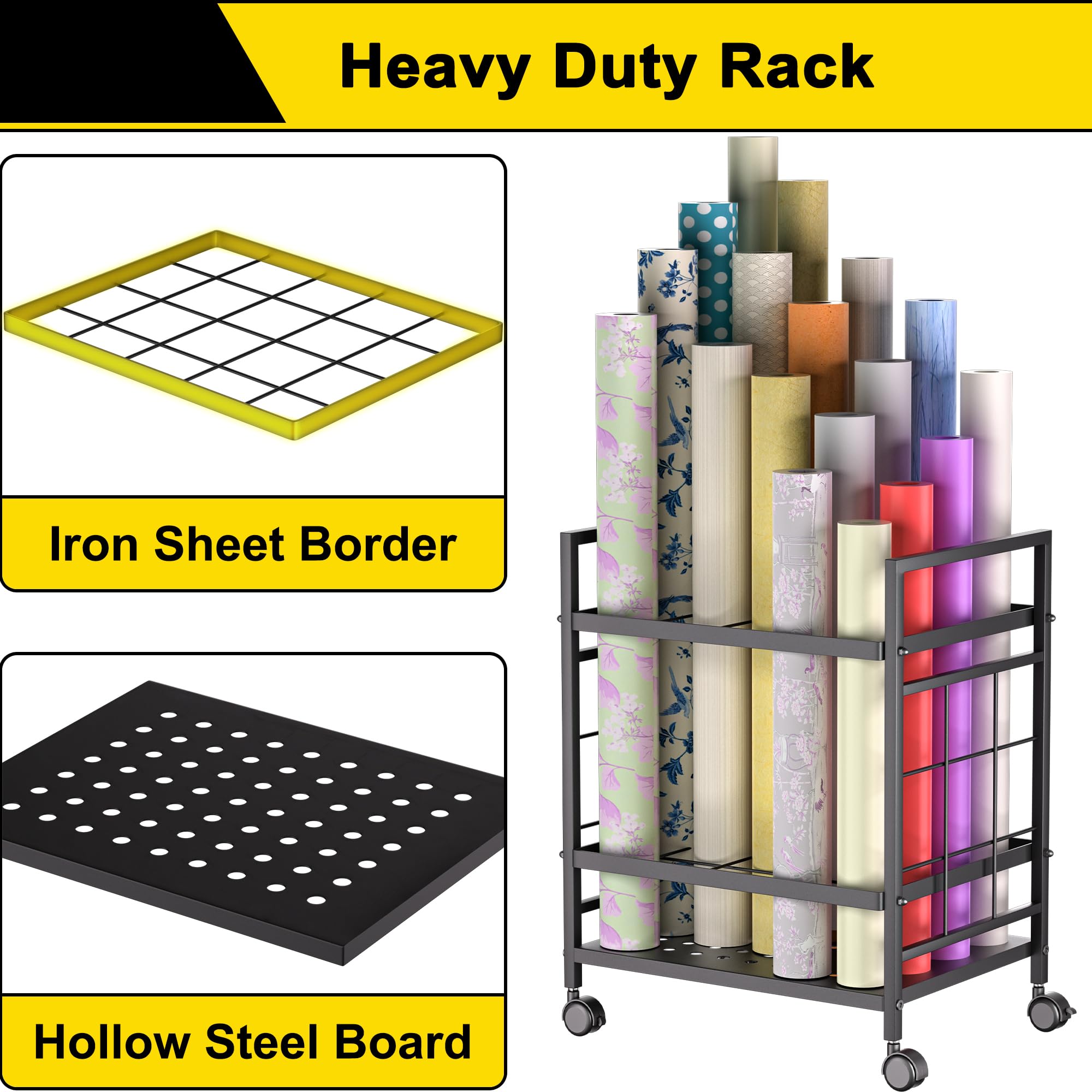 【Simplicity is Durability】Our blueprint storage rack cart has the simplest design. All-metal design, 20 compartments(3.2"*3.2") for storage, double-layer anti-tipping design, #-shaped appearance, and wheels. Yes, it's just that simple.