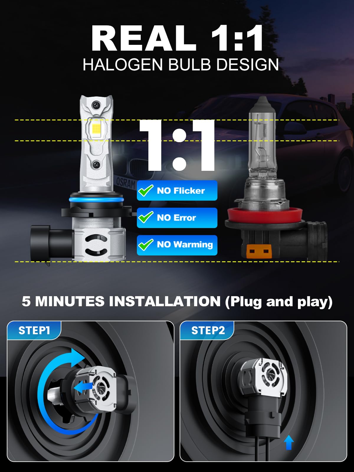 【True 5-Minute Installation】- Precision 1:1 halogen housing design—no adapters, wiring, or modifications. Genuine plug-and-play upgrade: Remove old bulb, insert rimthin 9005 bulb, secure. Zero technical skills needed