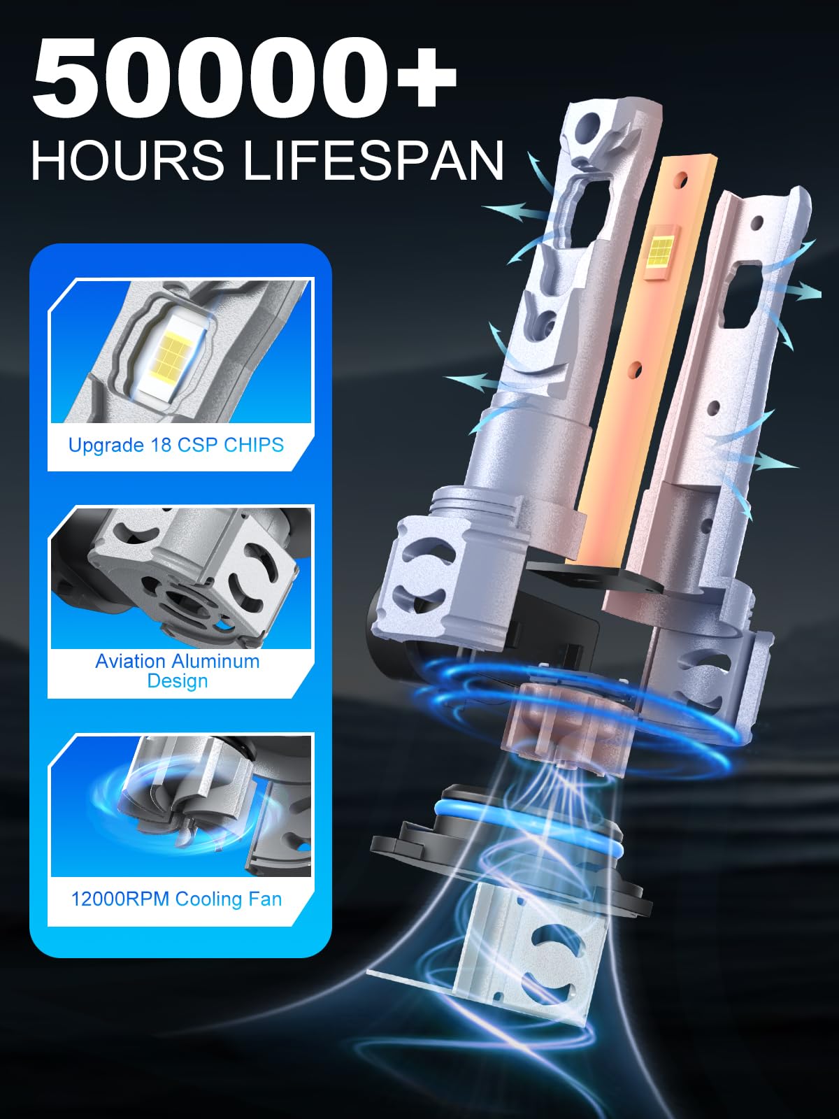 【50,000-Hour Lifespan】- 12,000 RPM silent fan + aviation aluminum heatsink dissipates heat faster. Military-grade chips ensure 50,000-hour lifespan—eliminates replacements