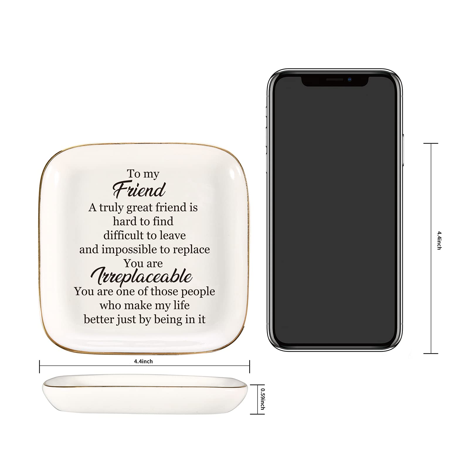 Greater Capacity and Ideal Keep Safe Dish: Approximately 4.2" L x 4.2"" W, larger than the usual size,so that you can hold more your rings,earrings, necklaces in kitchen windowill, nightstand or bathroom vanity.