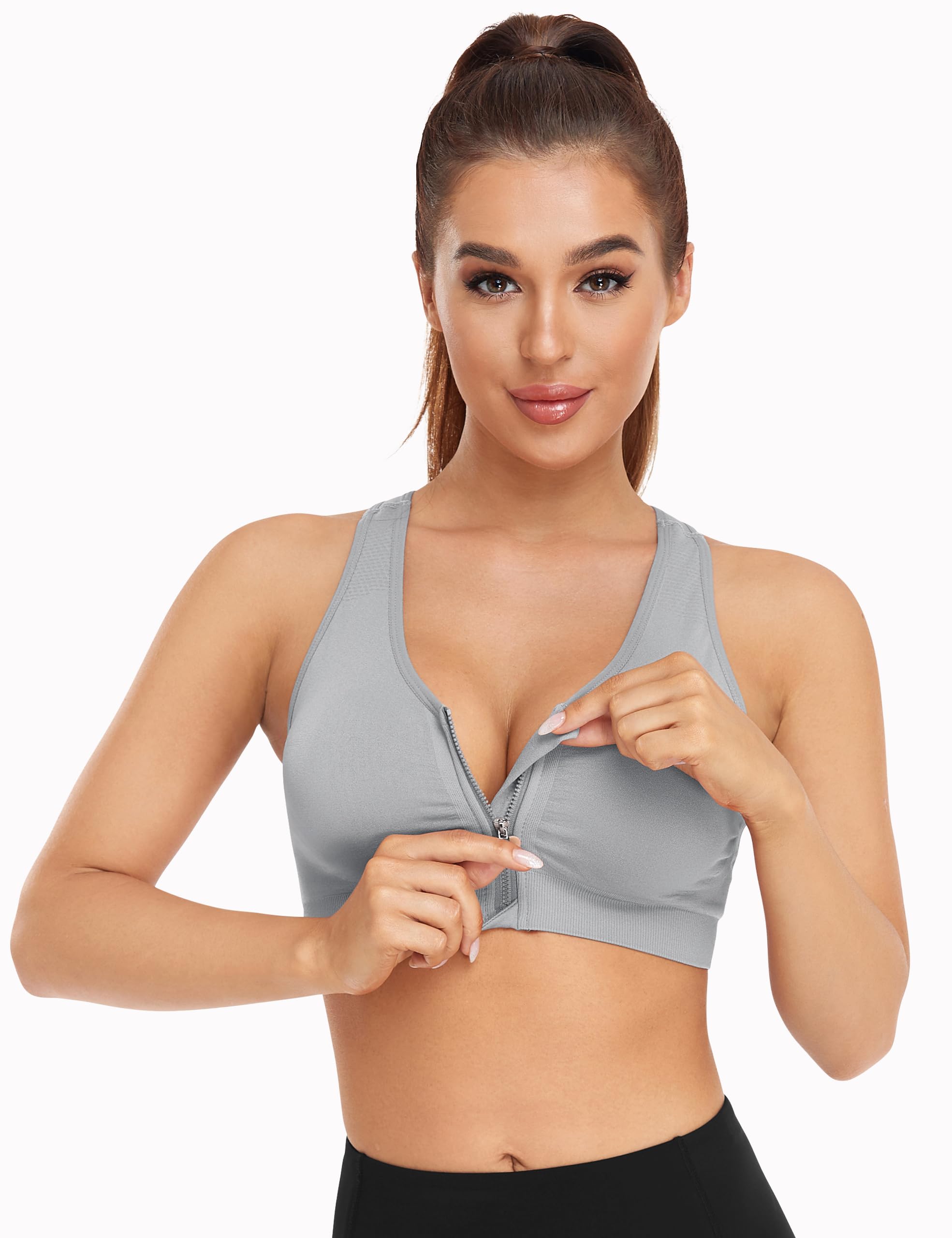 Front zipper closure-Easy to put on and take off with zipper front closure. Anti slide Zipper protect from sliding down when doing exercise. Protective layer of clothe covers the zipper on the inside to prevent scratching your skin