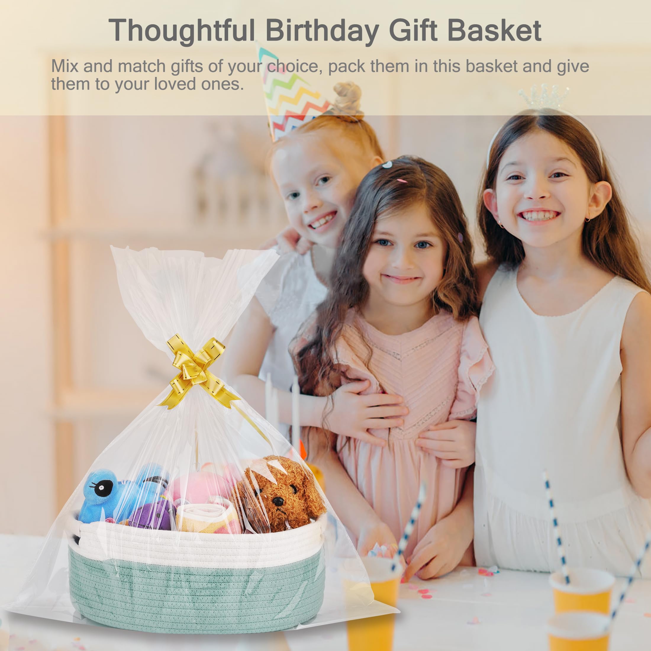 【Best Gift Set】The small storage basket comes with one clear cellophane bag and three ribbons of different colors. Mix and match gifts of your choice, pack them in this basket and give them to your loved ones. It's perfect for various occasions like Birthdays, Baby Showers, Mother's Day, Father's Day, Valentine's Day, Graduation Gifts, Easter, Christmas and more. This woven basket is a great gift in itself.