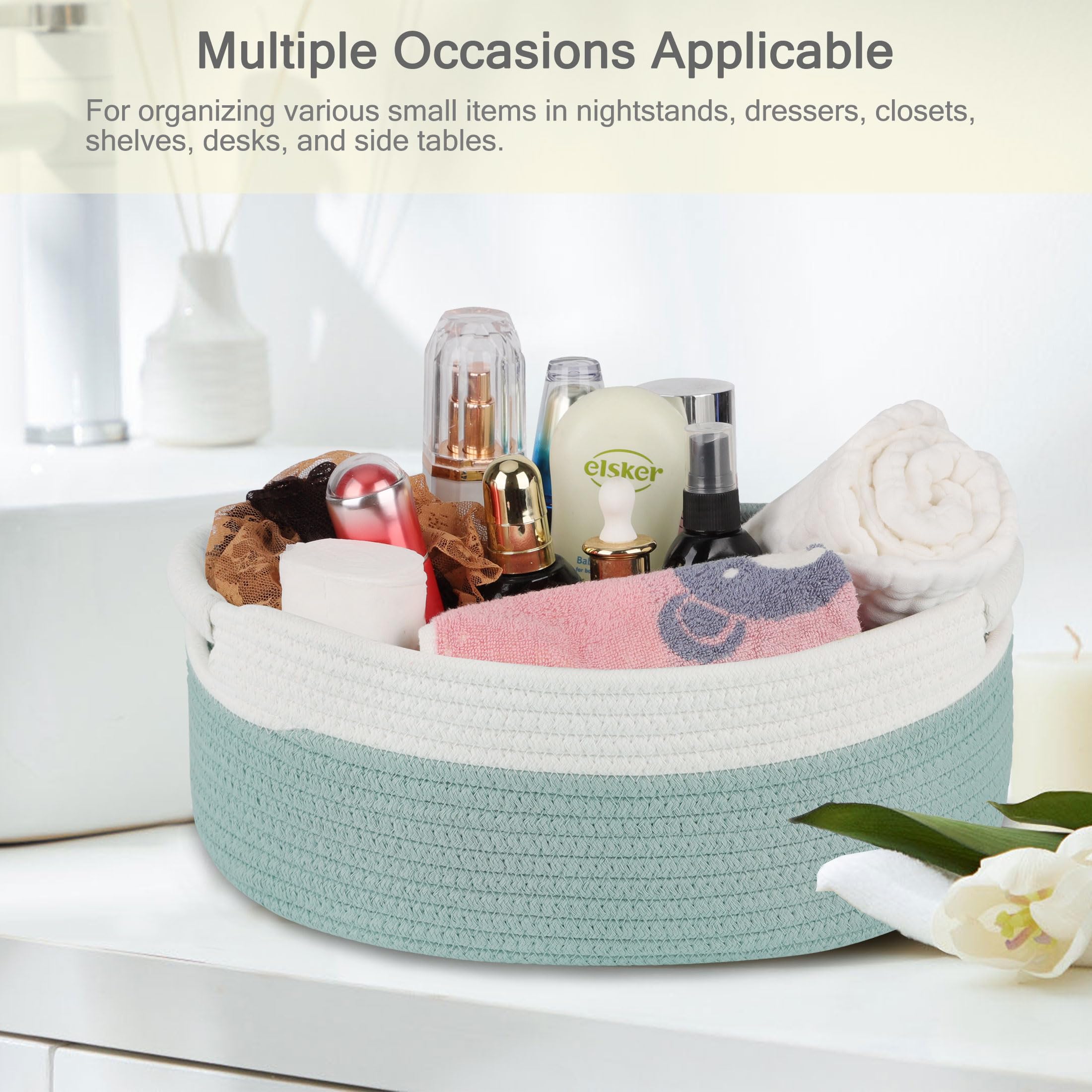 【Multiple Occasions Applicable】This woven storage basket is suitable for many indoor occasions. Suitable for organizing a variety of small items in bedside tables, dressers, closets, nurseries, bathrooms, dens, bedrooms and living rooms. After use, our rope woven basket will keep your room clean and tidy.