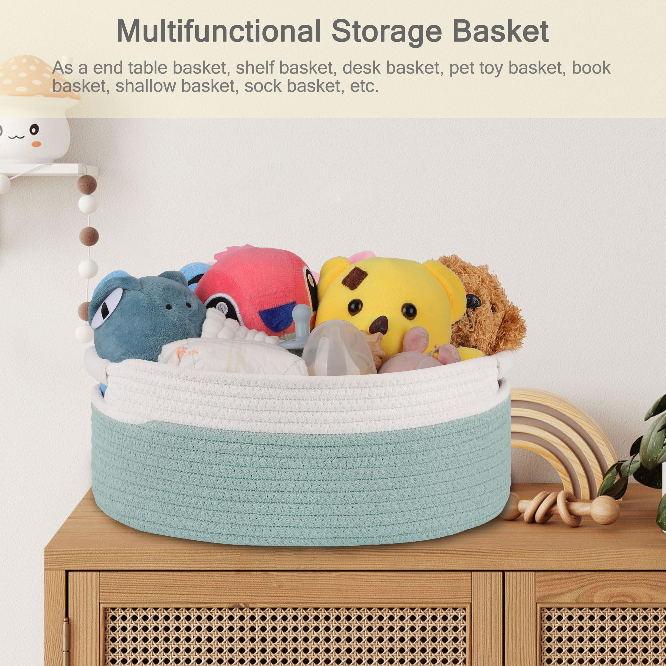【Multifunctional Storage Basket】 Our rope storage basket is the perfect solution for keys, wallets, diapers, books, remotes, toys, makeups, and more. You can use it as a baby basket, end table basket, shelf storage basket, desk basket, kids' toy basket, book basket, shallow basket, and more. It can even be used as a pet toy basket for cats and dogs.