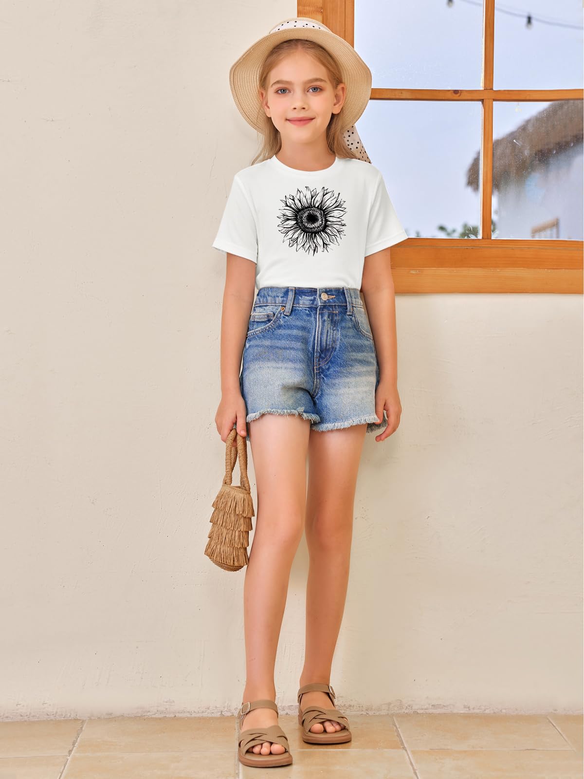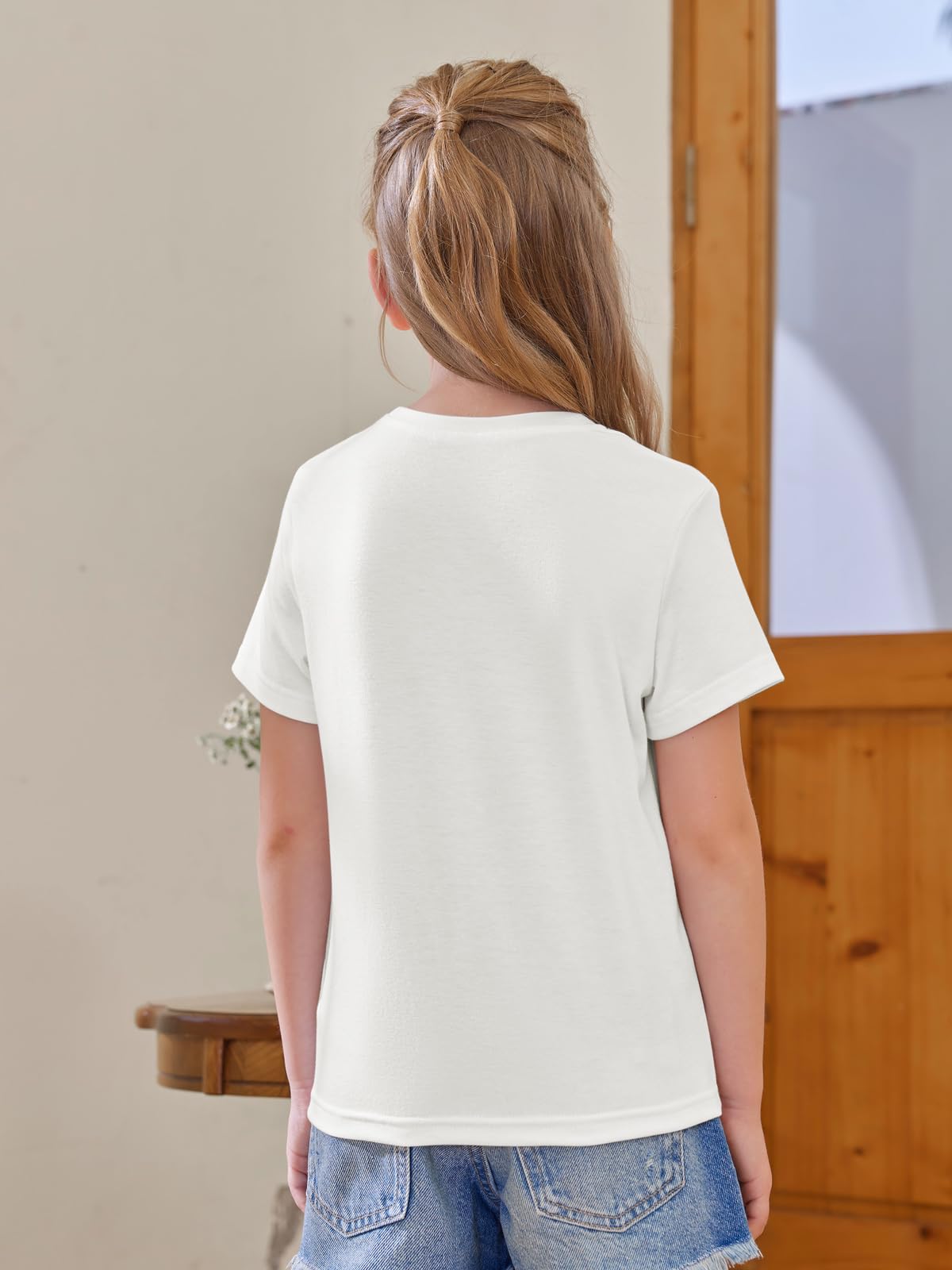 Match: These girls short sleeve T-shirts can be easily paired with shorts, skirts, jeans, overalls, sweatpants, flats and sneakers. Or pair it with a cardigan or jacket in spring and fall. A classic and basic tops that is cute and fashionable and will never go out of style