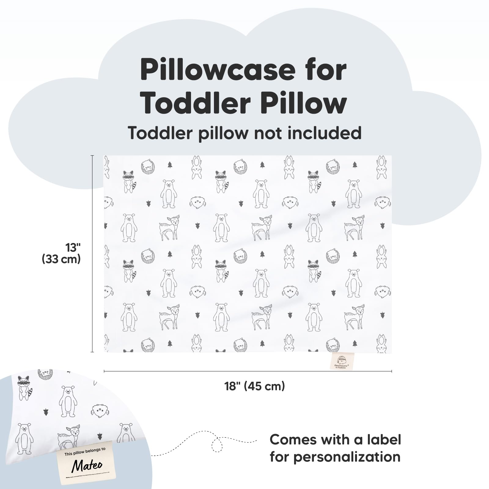 Toddler Pillow Cases 13 x 18 - Made of 100% natural soft and breathable cotton our pillowcase is suitable for all skin types including sensitive skin. Fits standard 13 X 18 inch toddler size pillows and comes with envelope closure to prevent pillow from sliding out of the pillow case.