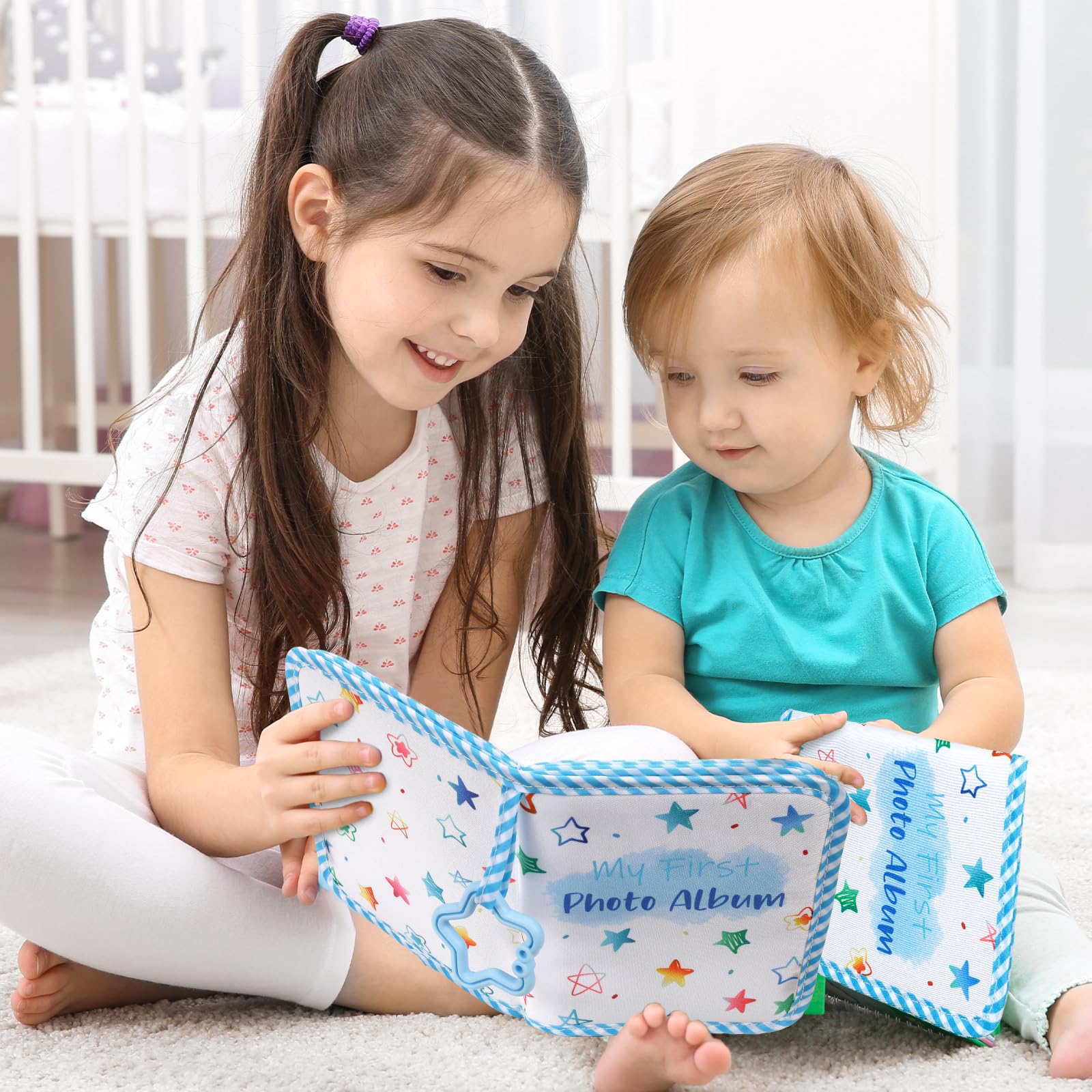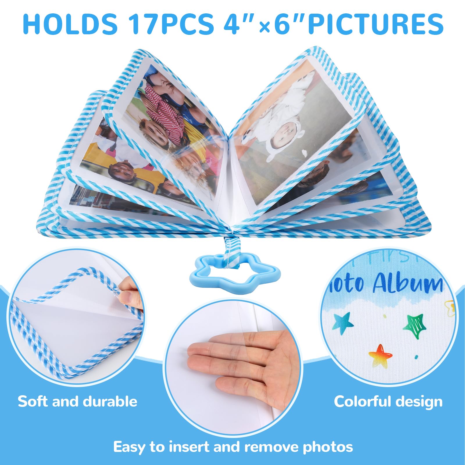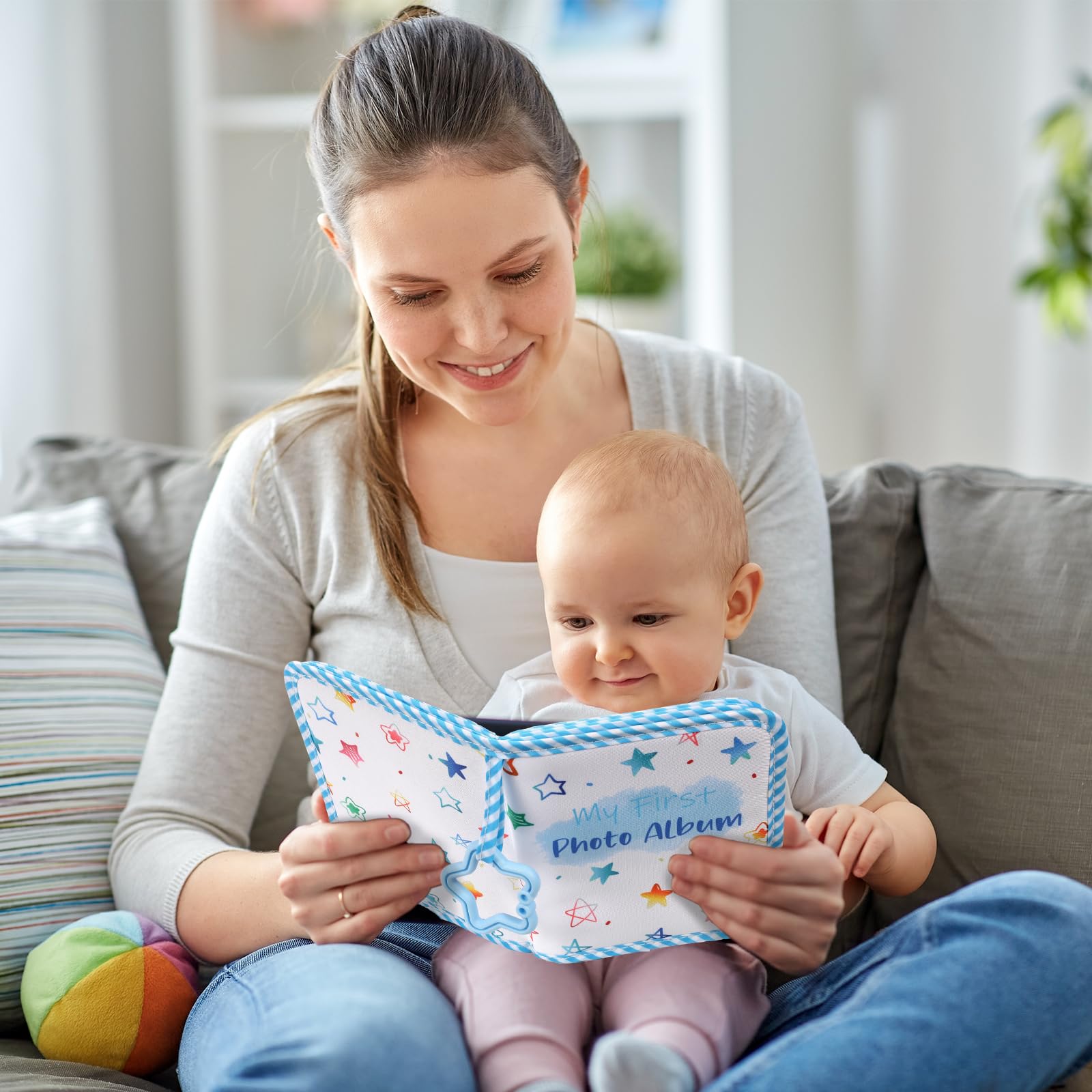 Adorable design: With its playful pattern of blue stars, flowers, and other whimsical shapes, is not only visually appealing but also serves as a durable and soft photo holder for your little one's first pictures. The cover is printed with the words "MY FIRST Photo Album" in a stylish font, making it the great way to document your baby’s growth and family moments. The simple yet elegant design makes it a timeless keepsake for both parents and little ones.