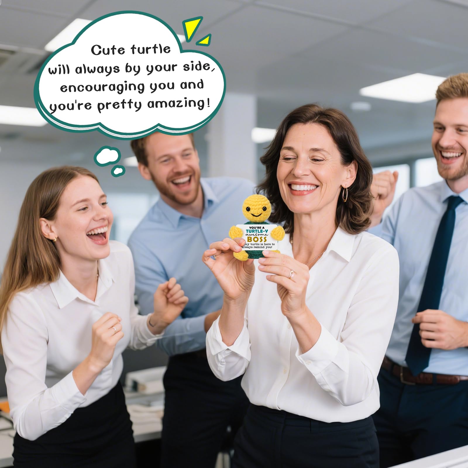 Handmade Crochet Turtle: Cute turtle is hand knitted with wool yarn, soft, comfortable and durable, you can take it anywhere. It is not just a mini turtle doll, It comes with words of love for boss, and will always remind her that you will always love her!