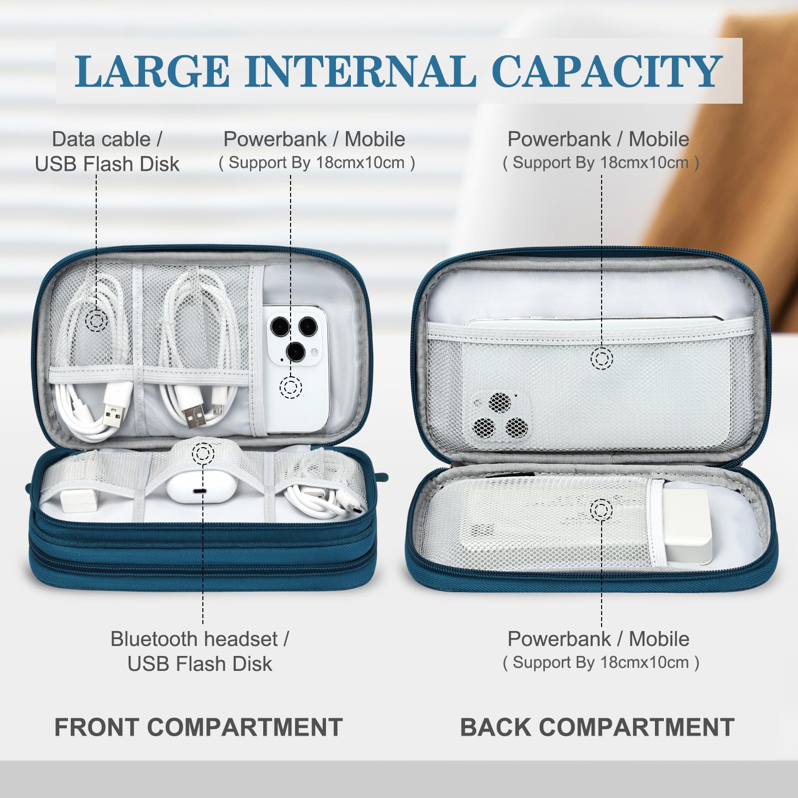 Dimensions: The Size of the cable storage travel case: 8.3" x 5" x 2.6". Compact size and lightweight make it easy to carry and put into your backpack, handbags or laptop bag without taking much space. Suitable for family use and daily organization