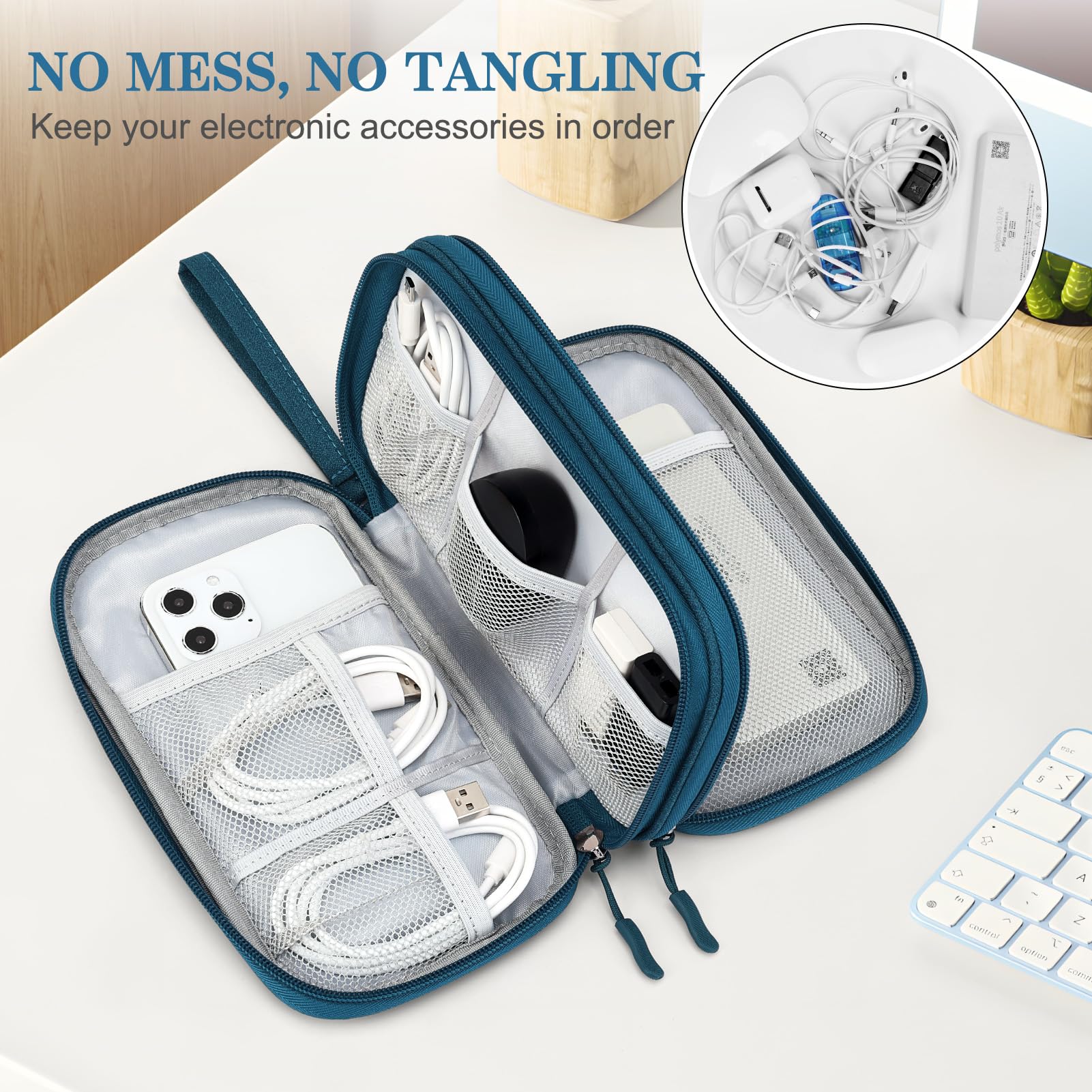 Double Layers Design: This tech pouch features a double-layer interior design with 8 compartments, including multiple see-through mesh pockets and ample space to store your cords, cables, USB drives, cellphone, charger, mouse, flash drive and more, keeping all accessories neatly organized and tangle-free