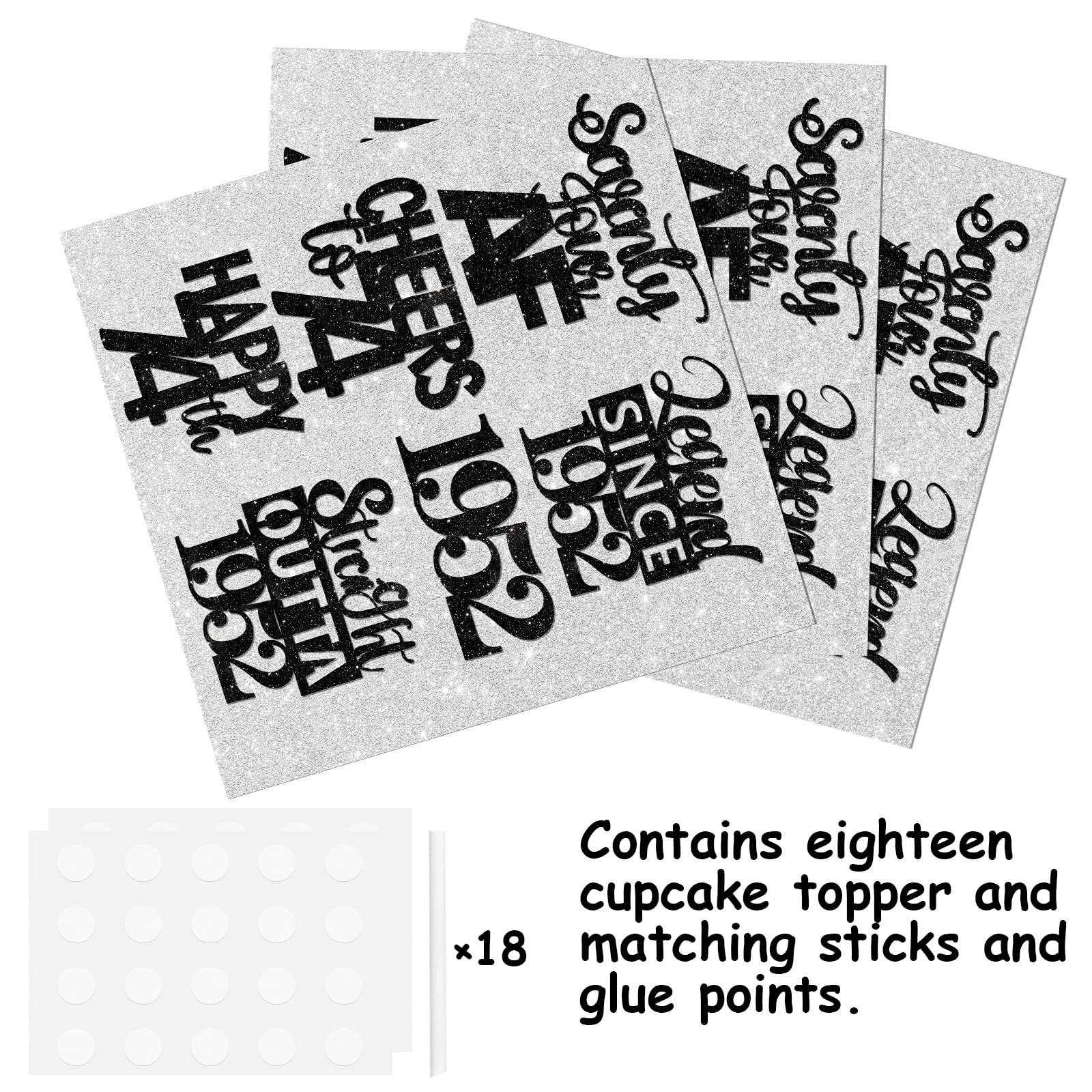 ๐ SIZE: Our products are made of high-ranking glitter powder paper cardboard .Perfect for most cupcakes, 2.0 x 2.0 inches.Perfect for cupcake topper to celebrate birthday!
