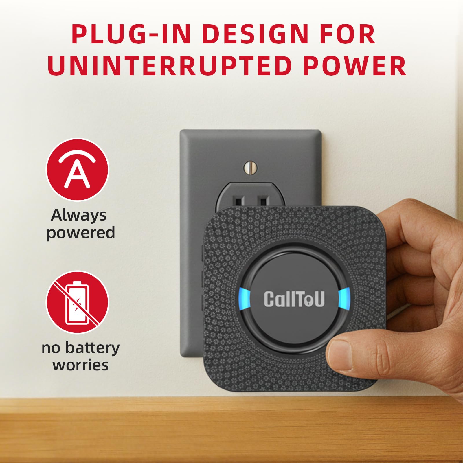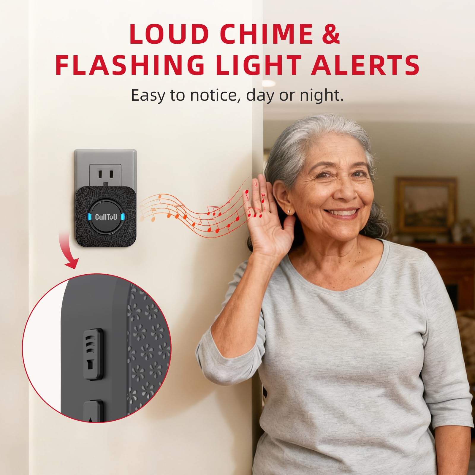 [ Smart Ringtones ] The receiver of caregiver pager has 55 ringing tones to choose from and 5 level adjustable volume from 0db to 110db. Easy use by plug the receiver into an electrical outlet