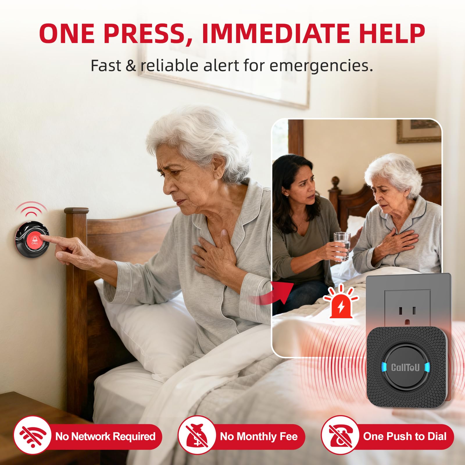 [ Wireless Guard ] 1 Receiver 1 Call Button. Allow caregivers and residents to be free while ensuring that help is still available at the touch of a button, ideal for elderly, seniors, patients, disabled