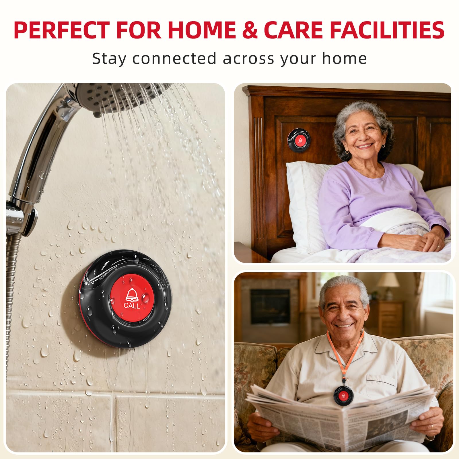 [ High Quality ] Both call button and receiver are waterproof and dustproof. Whether you install it in the washroom or take it outside on a rainy day, you don't have to worry about this caregiver pager getting wet