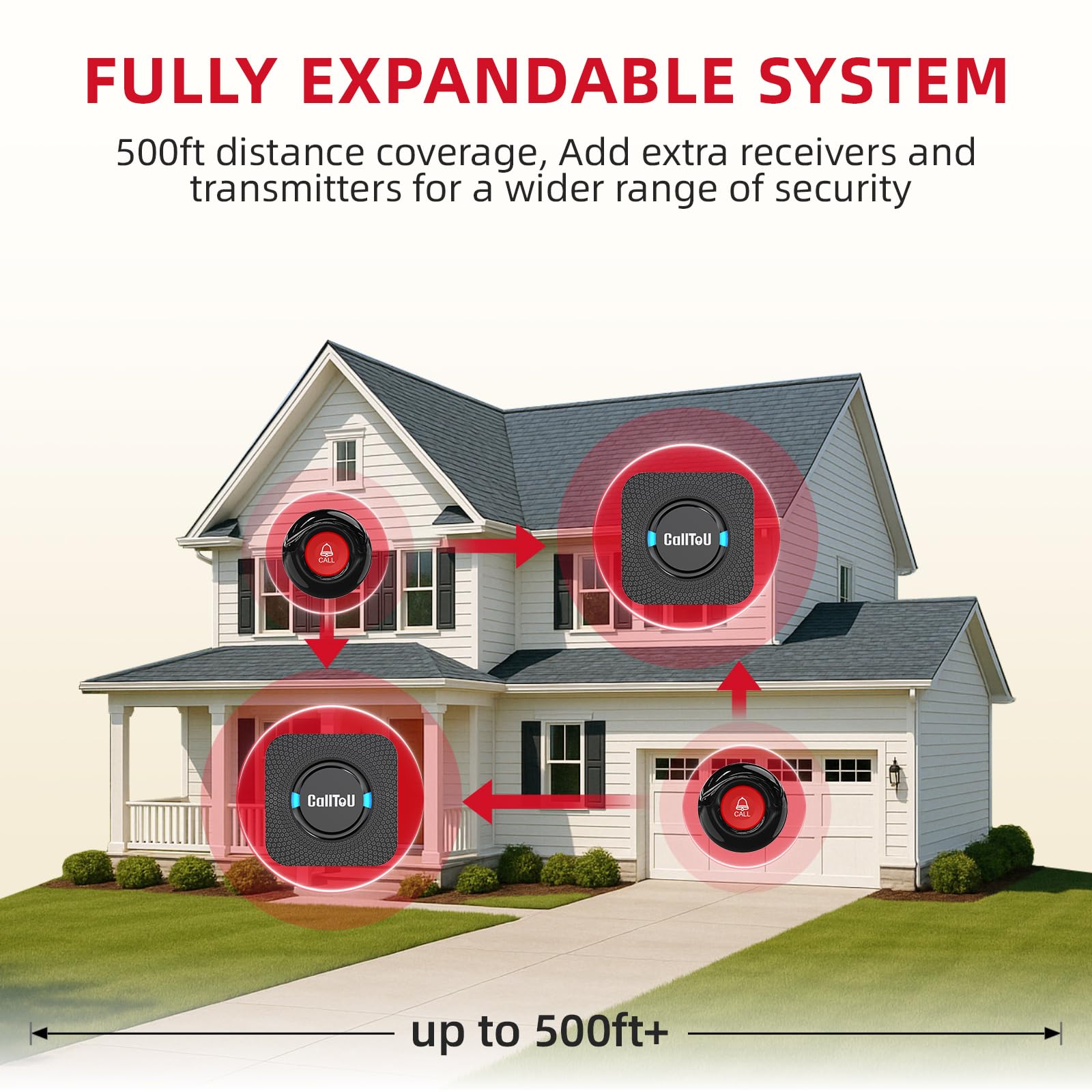 [ Easy to Carry ] The receiver can be moved with the caregiver and the open area working range is 500+ ft, you can take it to the bedroom, kitchen or living area(receiver requires plugging into an outlet). The call button can also be hung around the neck of the person with a neck strap who needs help like a pendant or secured with a bracket or double sticker