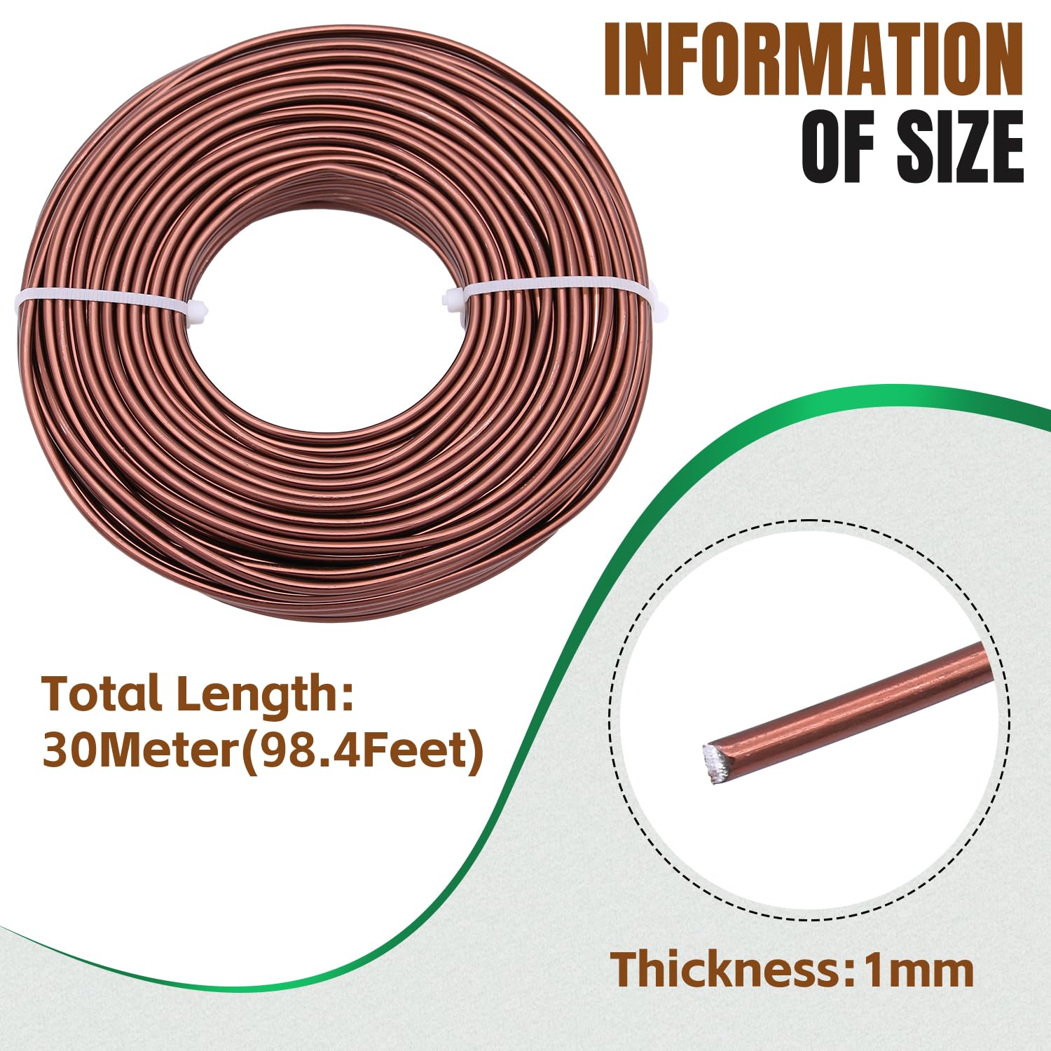 【ALUMINUM CRAFT WIRE SIZE】: 18 Gauge(1mm) in thickness, 100 Feet (30m) in length,Copper