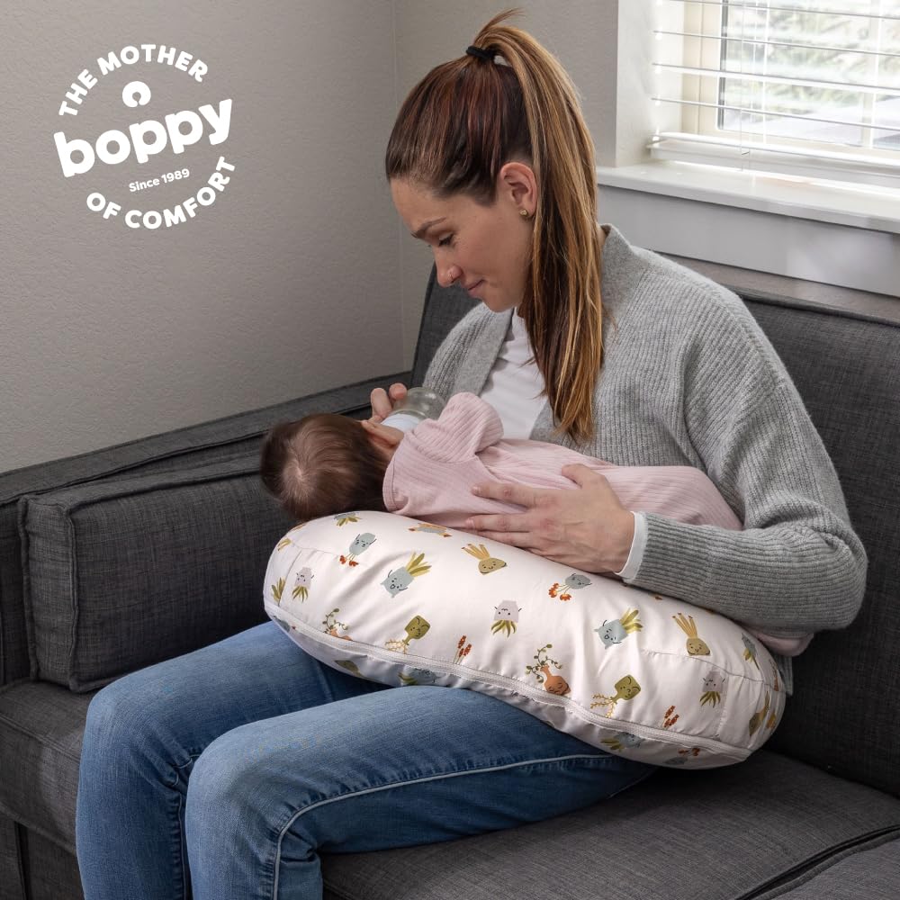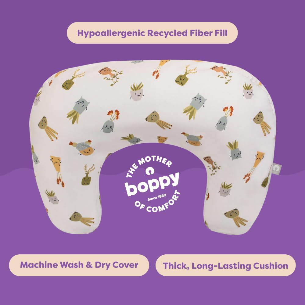 The flagship Boppy Nursing Pillow is designed to make feeding time more comfortable, supportive, and stress-free for both you and your baby. Its firm, ergonomic, patented design offers a higher surface to bring baby closer, reducing back, neck, and shoulder strain of parents during bottle or breastfeeding. The spacious, supportive surface helps position baby at the right height for a better latch in multiple feeding positions. Filled with hypoallergenic recycled fiber, it maintains its supportive shape over your entire feeding journey. A water-repellant liner and machine-wash, dryer-safe cover make cleanup easy, because spit happens! Trusted by parents and baby experts for over 35 years and verified by the Baby Safety Alliance, Boppy helped develop rigorous federal safety guidelines for nursing pillows, putting baby safety and parent comfort first, and ensuring comfort and confidence with every mealtime moment.