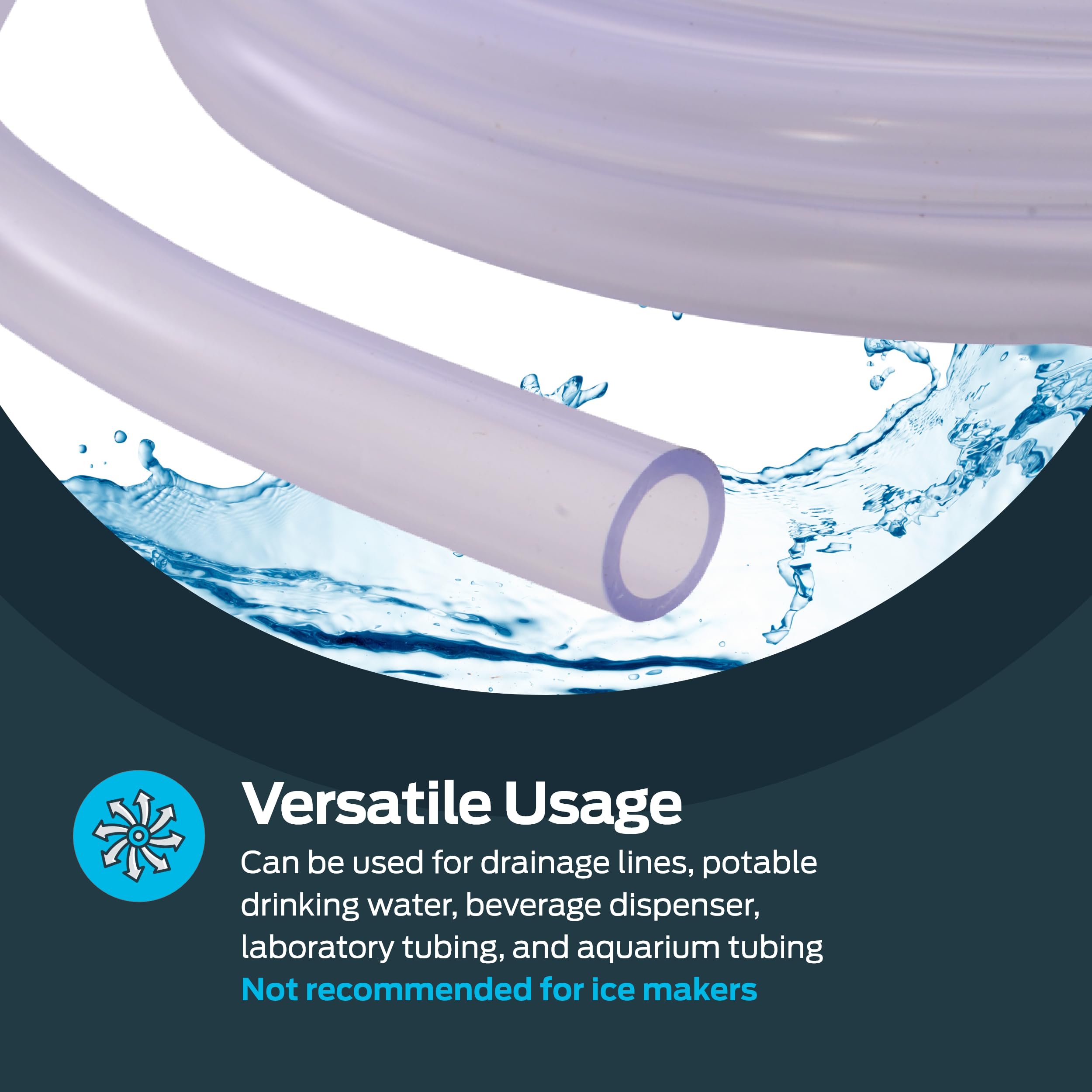 MULTI-PURPOSE USE: Great for drainage lines, potable water, beverage dispensers, aquarium tubing, and lab use; not recommended for ice maker supply