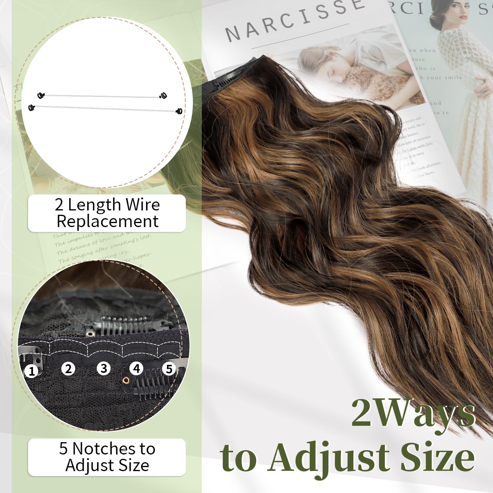 Specifications: Each package includes a hair piece containing 4 clips; 2 different lengths of fishing wire for replacement; You can adjust the suitable size according to your head circumference by putting the hook into the corresponding wire notches. The upgraded wire is thicker and more flexible, not easy to break and will not cause any stress to the scalp.