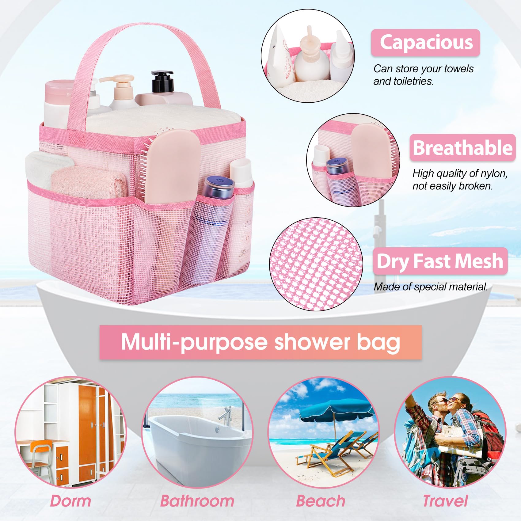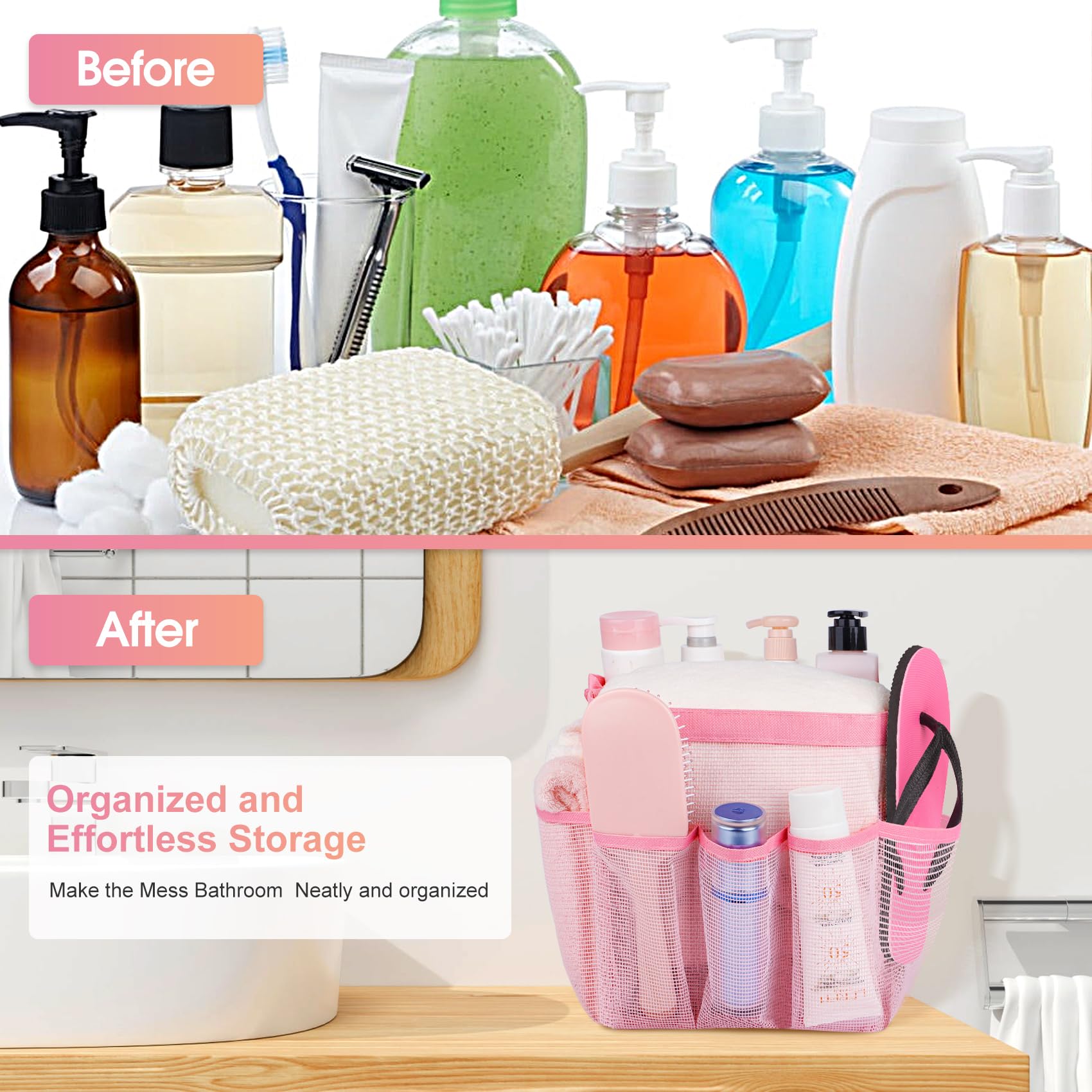 High Quality - The shower caddy portable is made of tough and sturdy mesh, the shower basket can holds many toiletries and doesn't tear, and the mesh at the bottom allows for quick water filtration and may keep the pocket upright.
