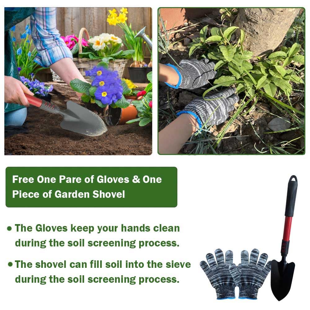 【Durable Build, Comfortable Handling】 Crafted from high-quality wood, our compost sieve screen boasts rock sifter construction. Meticulously polished and free from rough edges or burrs, it offers a comfortable grip for extended use.