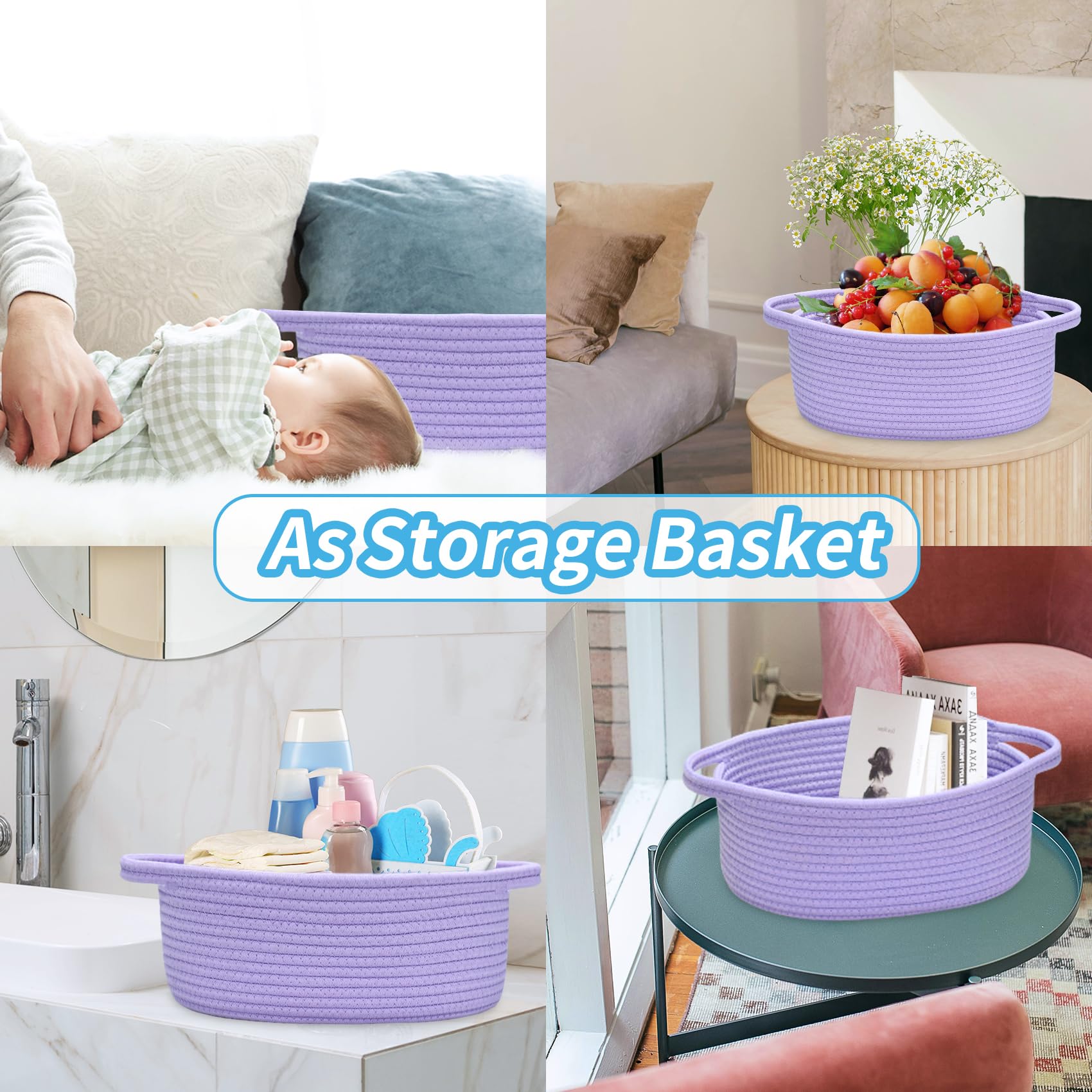 Made of durable cotton rope, natural, chemical-free, skin-friendly, woven basket safe for baby and pets, scratch-free to floors or walls