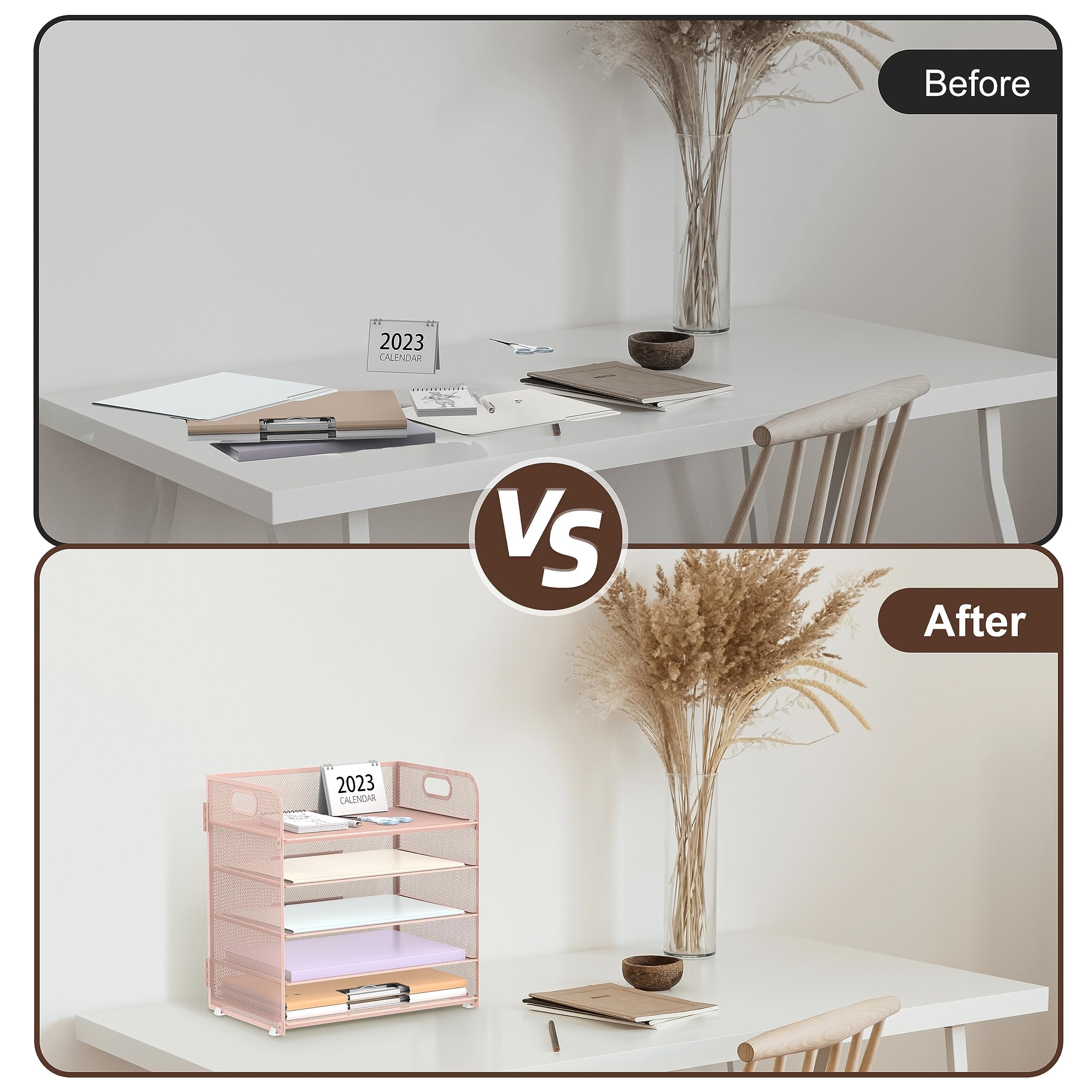 [Handle Design] The handle design makes the paper tray organizer easy to move. These pink desk organizer are suitable for women, students, office clerks, teachers, and teens, offering both functionality and aesthetic pleasure.
