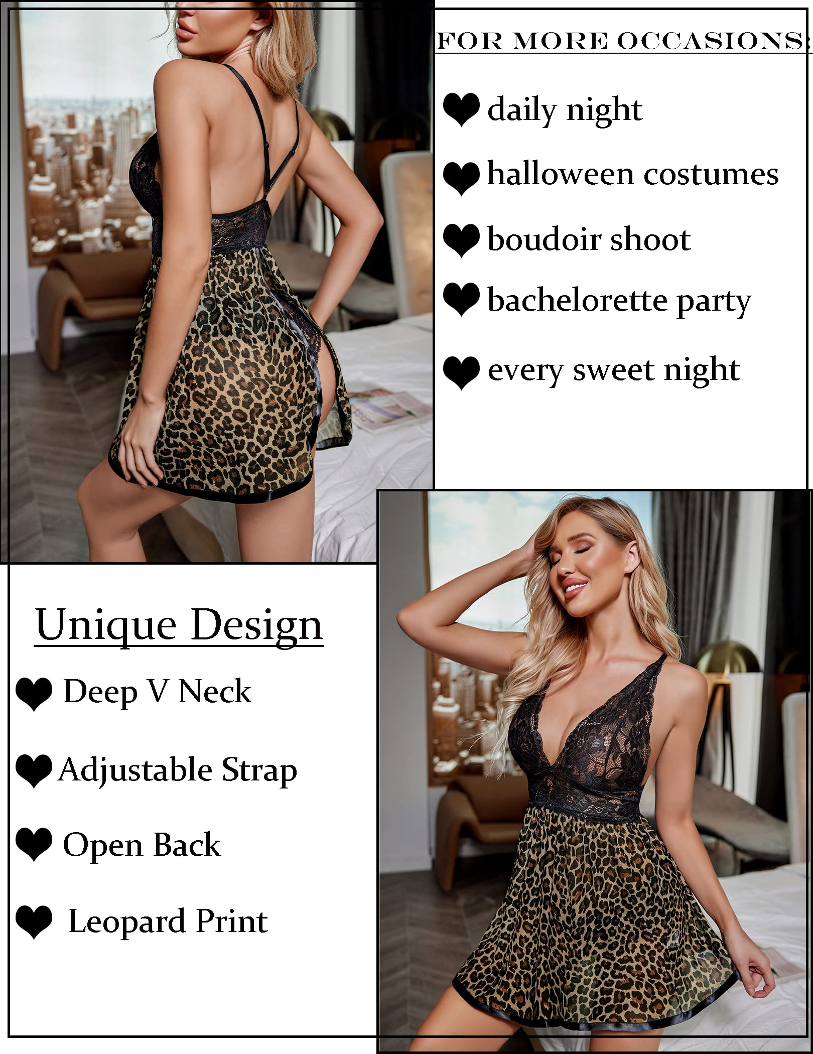 【Unique Design】This lace babydoll lingerie features deep V-neck lace cups and open back design that beautifully contours feminine silhouette.Practical V-shaped adjustable straps ensure perfect fit and all-day comfort.Luxurious satin hem trim adds elegant detail.Sexy lace panty can be worn as a set or alone,2-in-1 design is more convenience for your trip