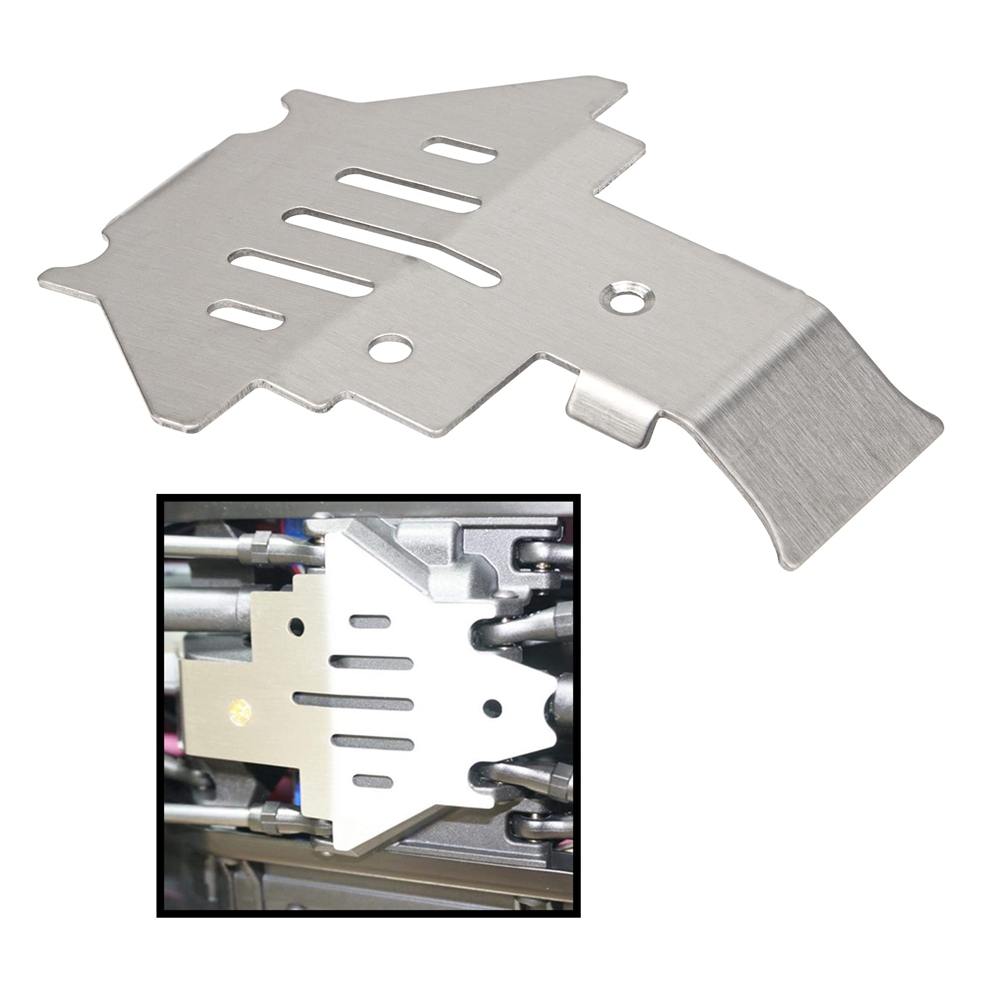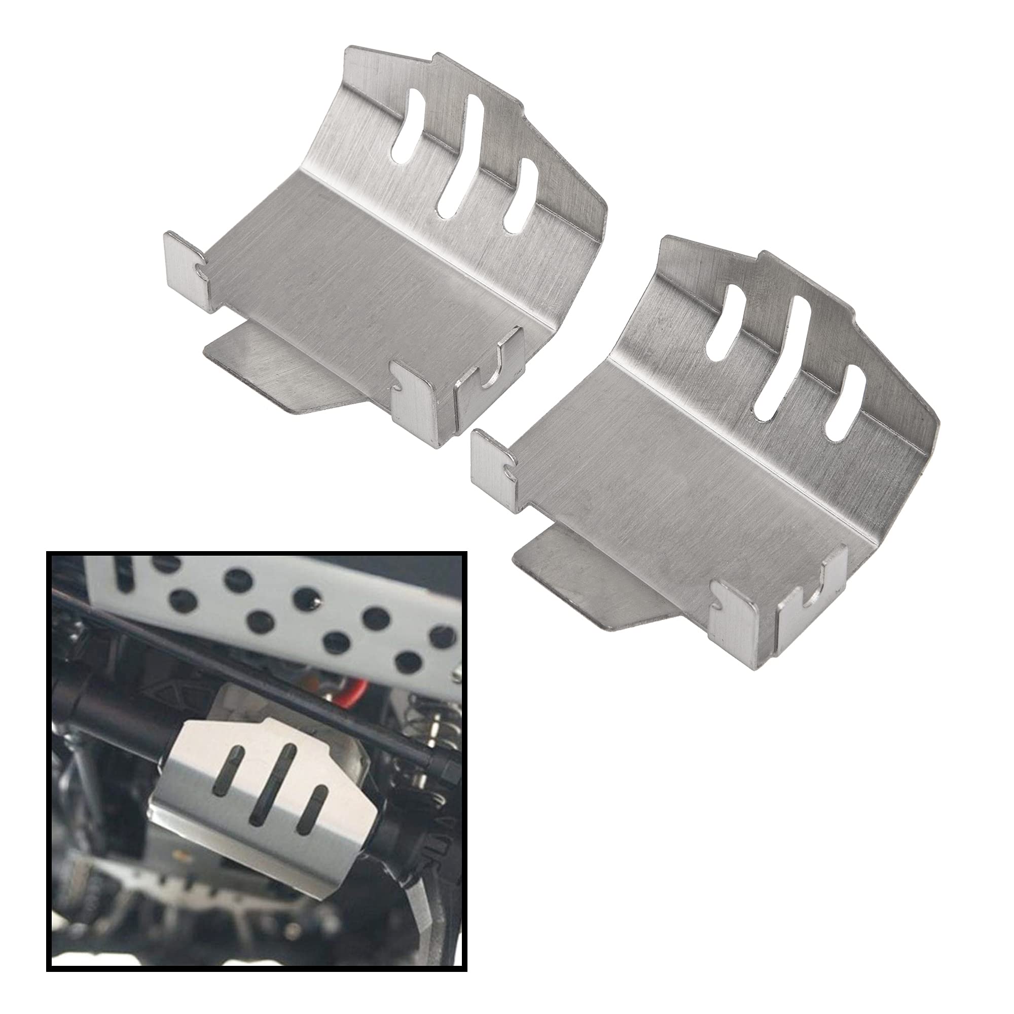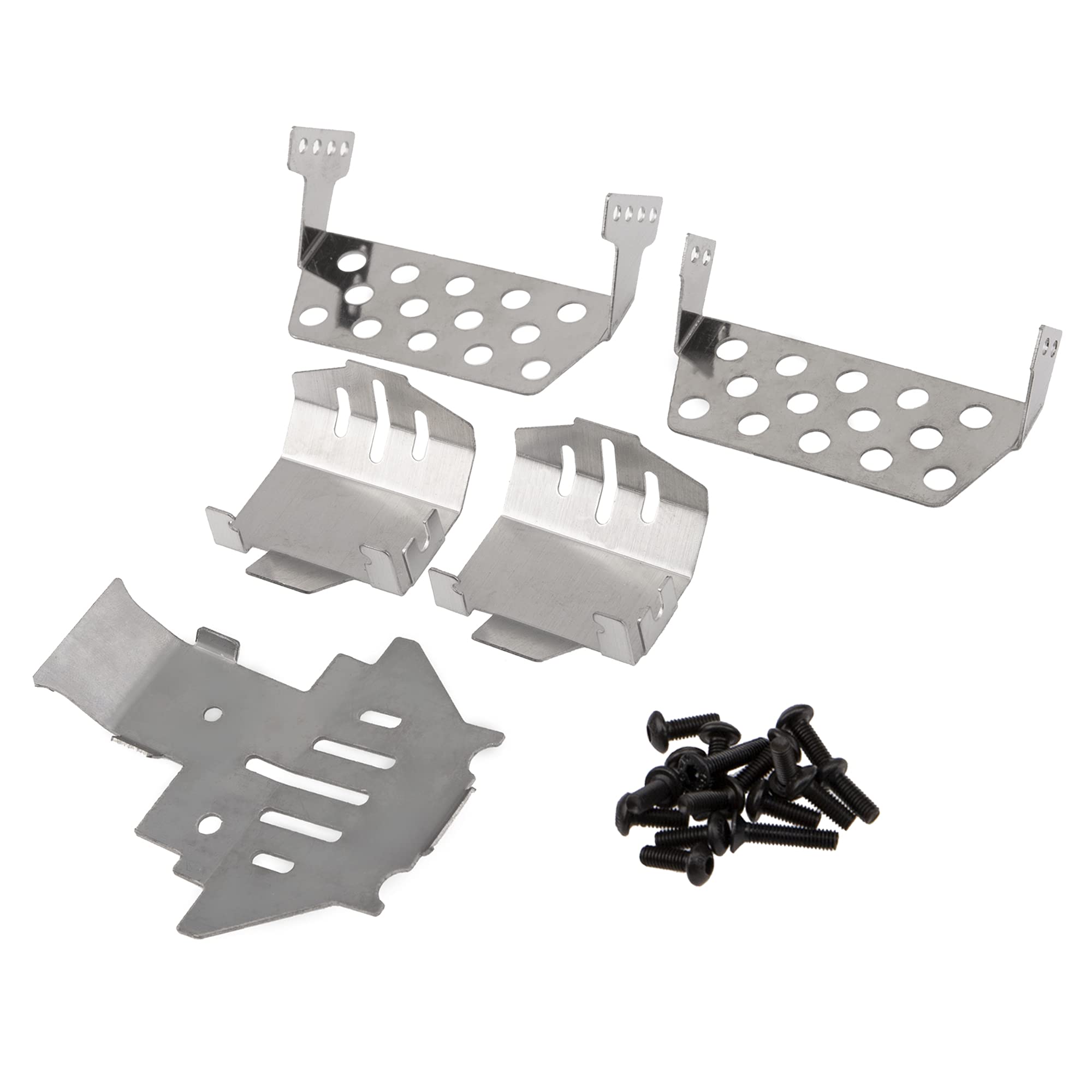Compatible with Traxxas TRX-4 82056-4 1/10 RC Crawler Car Made of stainless steel,strong and sturdy. It can effectively protect your RC car from scratch and abrasion, so that it will prevent damage to the front and rear bumper. Lightweight upgrade to better protect your rc car, ensures the performance of your rc car. Come with screws,easy to install and upgrade from original parts. Material: Stainless Steel Color: Silver Quantity: 5Pcs/1Set Weight:98g/Set Package List: 2 x Axle housing Guards Plate 1 x Chassis Guards Plate 1 x Front Guards Plate 1 x Rear Guards Plate