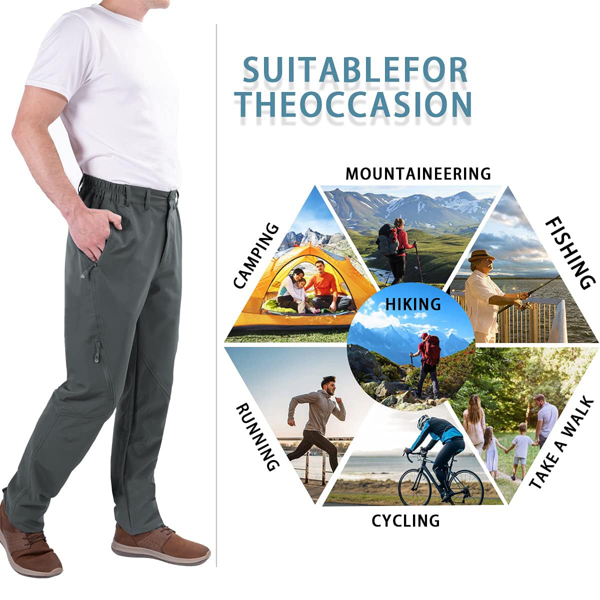 Full occasions accepted : The pants are ideal for outdoor sportswear, like hiking, climbing, fishing,scrambling, trekking, camping, field work, or approaching, as well as general-purpose active use