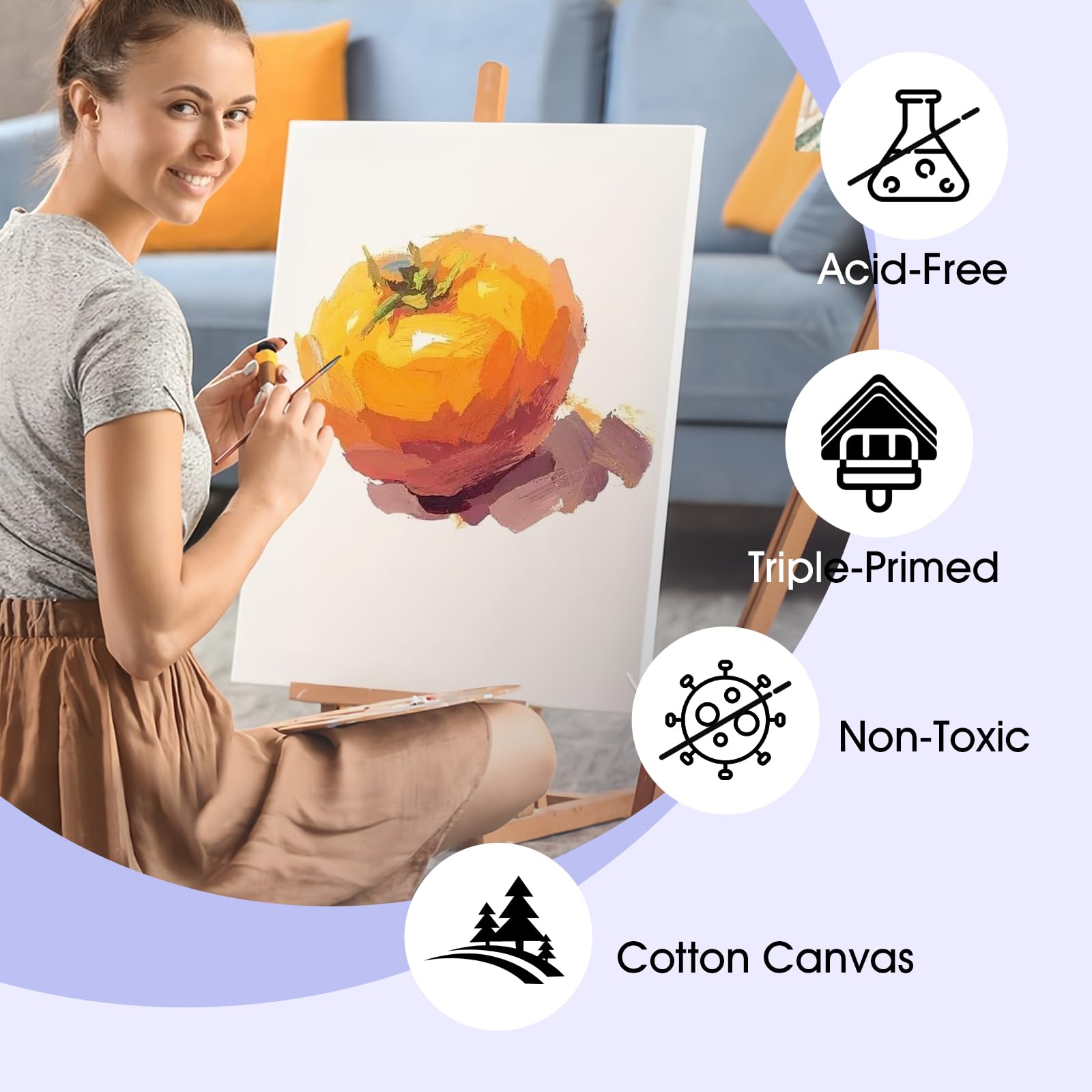 Premium Quality: Each cotton 12x16 large canvas for painting is pre-coated acid-free acrylic gesso. Primed weight 8 oz.Easy to color and not easy to crack.