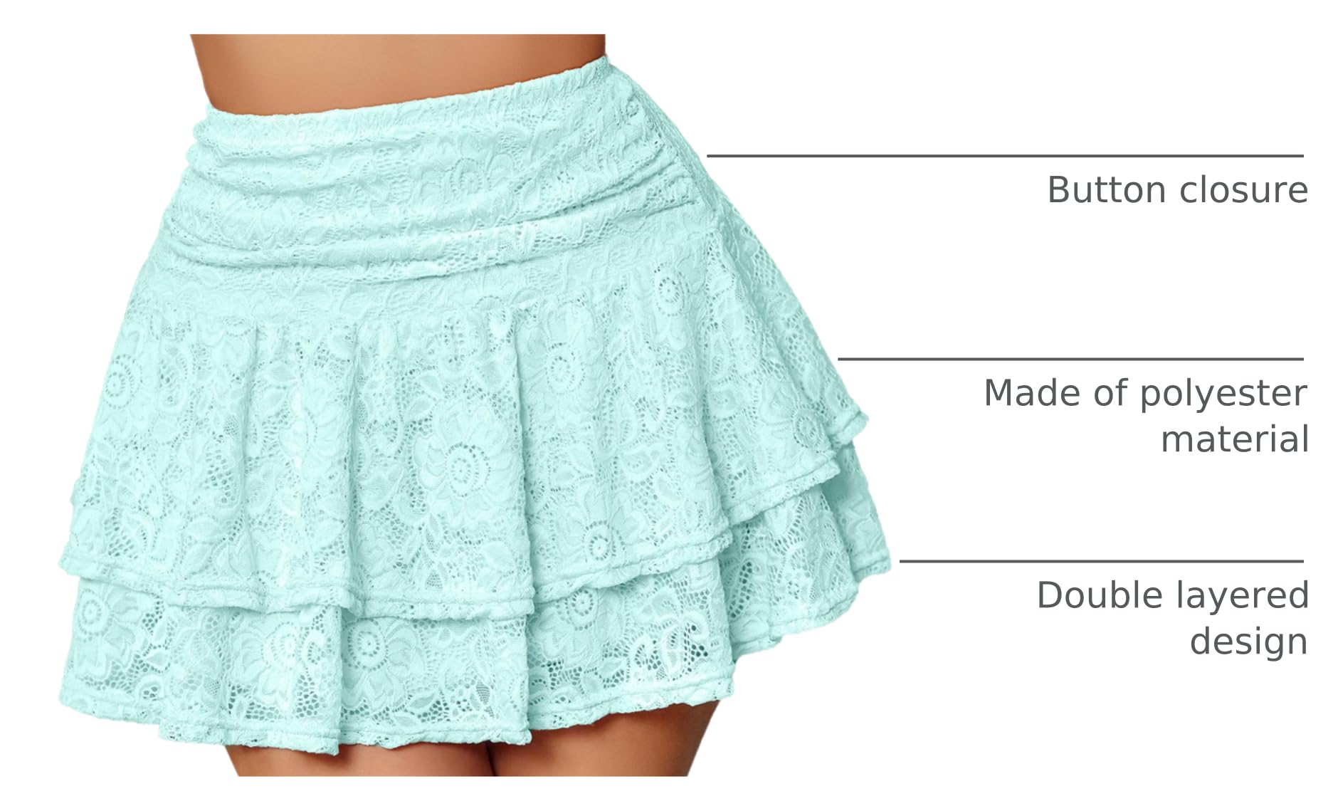 πDesign---Mini skirt featuring double layered, no see-through, A-line flared silhouette and lace ruffle design which can show your flattering curve very well. Chic design make them will never go out of style.