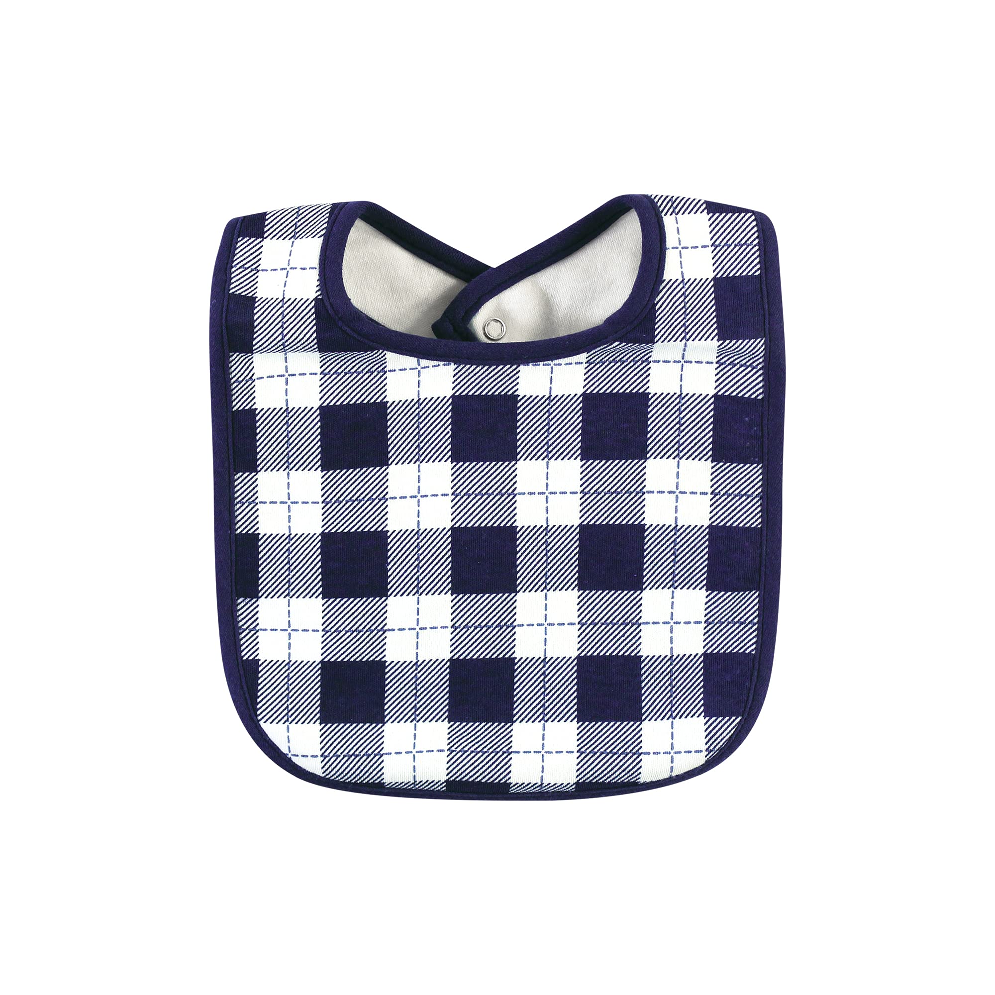 Bib made with multi-layered, gentle fabric to absorb drools and spills