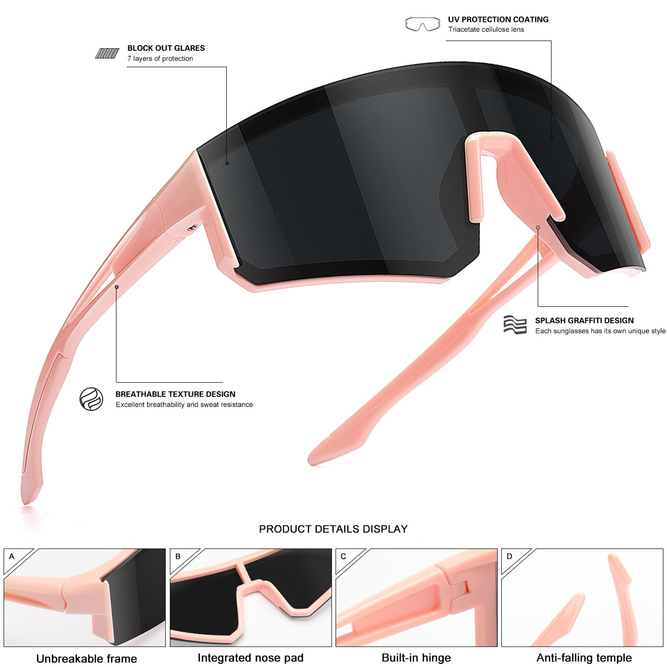 KIDS BASEBALL SUNGLASSES - fashion polycarbonate frames, enhancing the youthful style of teenagers. The wrap-around design offers better eye protection, providing a broader field of vision while effectively shielding the eyes from dust, wind, and other elements, ensuring comprehensive eye protection. Suitable for kids aged 6-12.