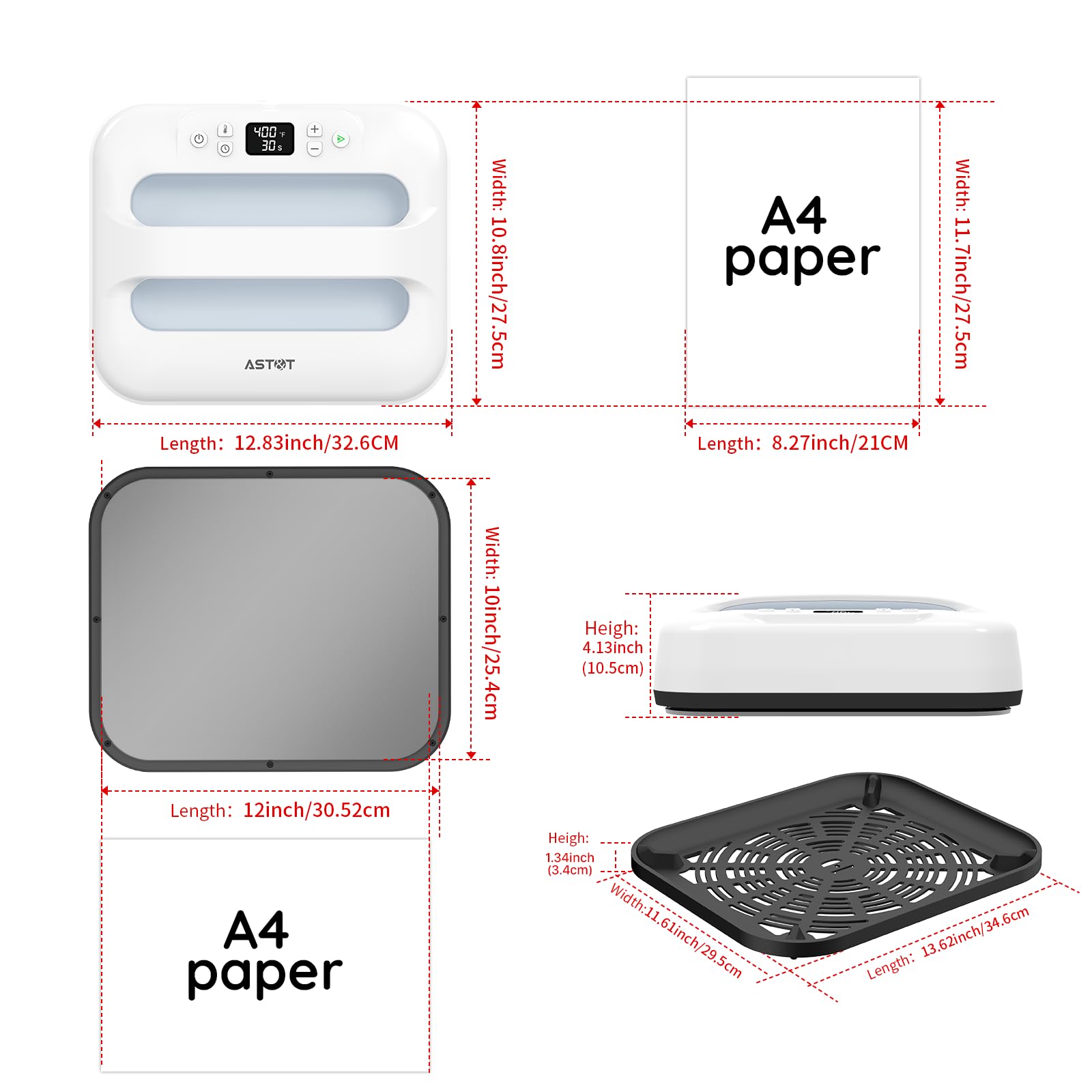 12 X 10 HEATING PLATE: Easy press 12 inches x 10 inches size (30 .52centimeters x 25.4 centimeters) ideal for larger T-shirts, jackets, sweatshirts, polo shirts, banners, blankets, canvas bags, and more large projects. The lightweight of only 8.6 lbs is perfect for a variety of non-commercial heating transfer work