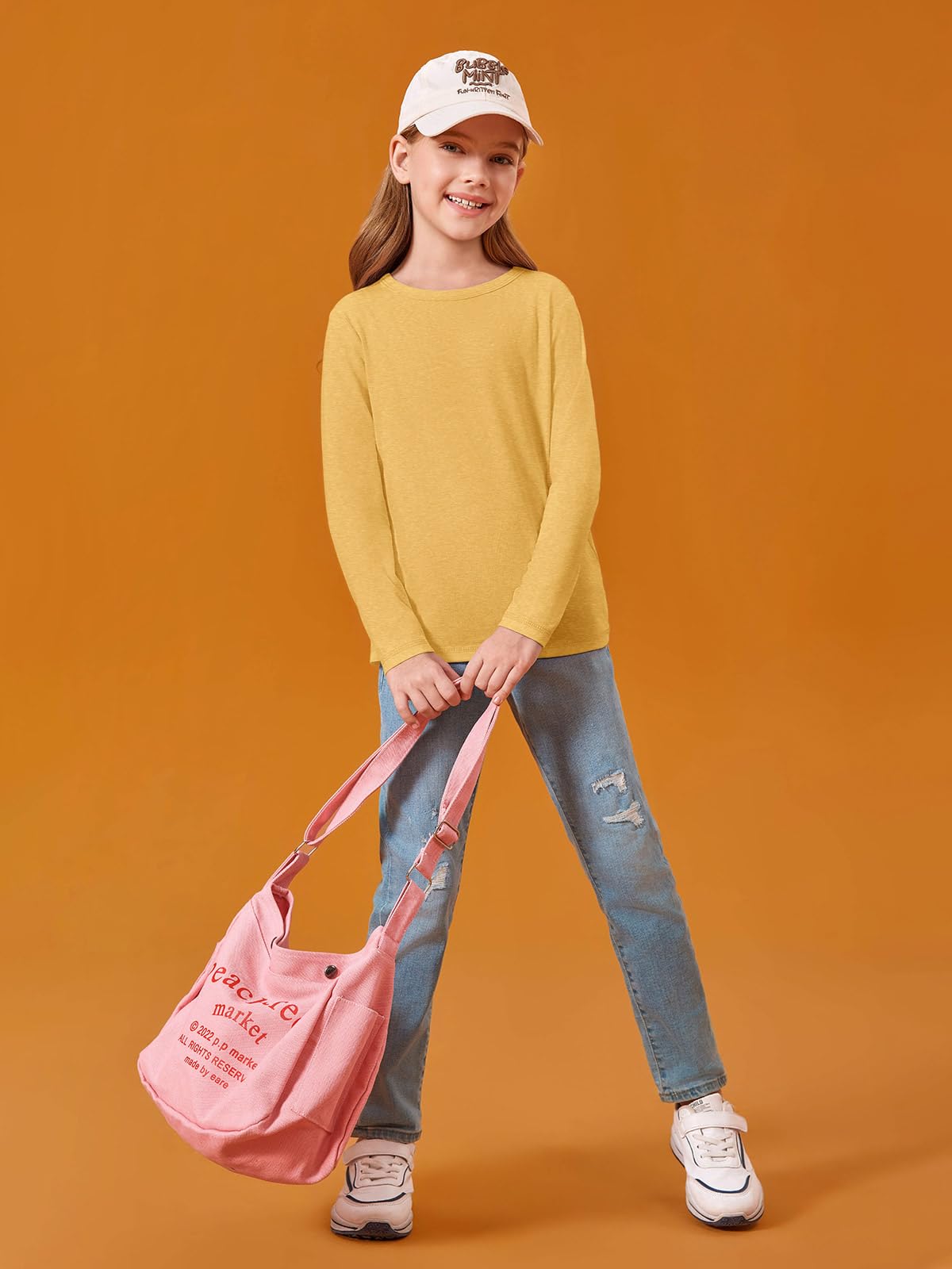 Features: Girls fall fashion t-shirts are designed with a classic crew neck and long sleeves, these tops provide a versatile and timeless look. Available in solid colors, they embody a simple yet stylish aesthetic ideal for casual wear, cute basic tees, trendy shirts outfits for tween, the loose fit tops provide a comfortable fit for ease of wear and movement