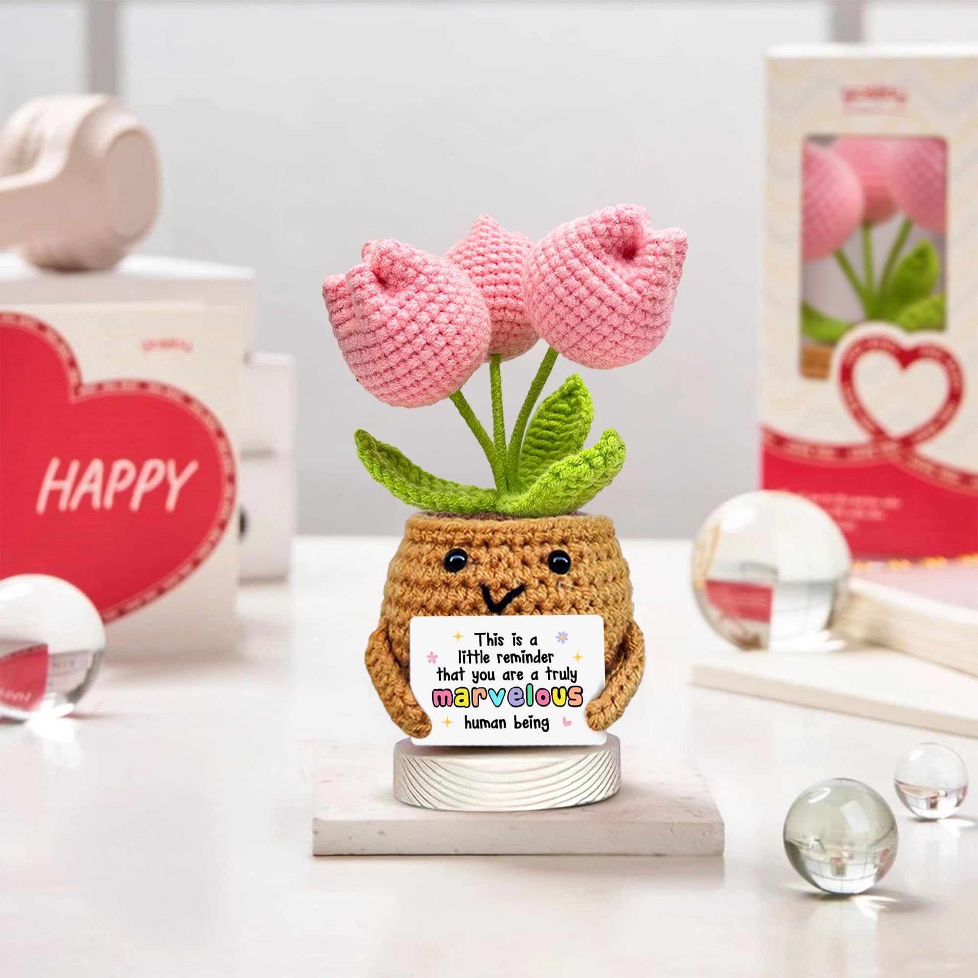 🌟Multi-functional: This heartwarming wool crochet plant, paired with an uplifting emotional card, is a versatile decor piece for both home and car. Perfect for a desk or dashboard, it's a truly thank you gift that anyonewill adore and treasure.
