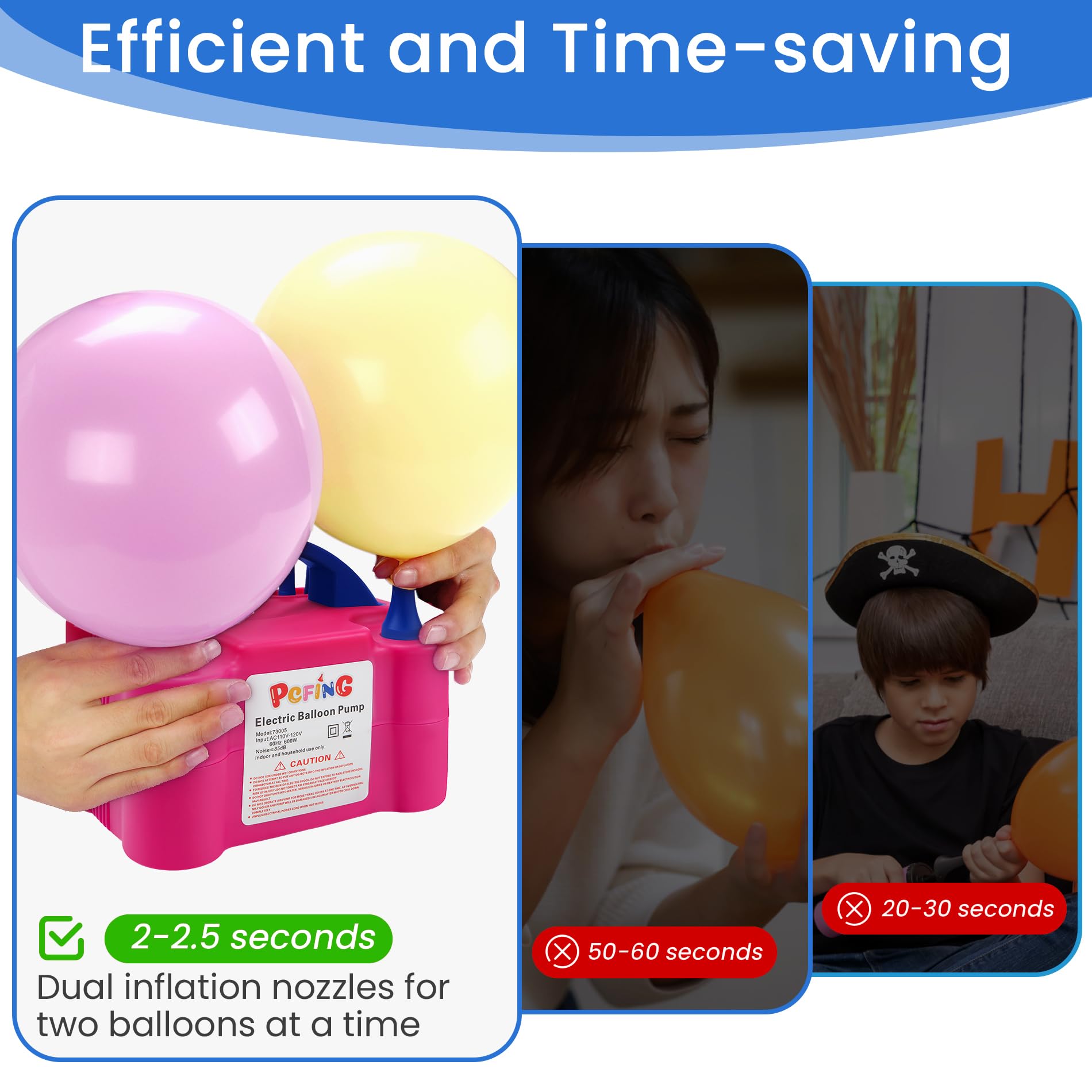 [Efficient] Pressure: 22000pa-26000pa; Air Flow: 900L/min. 2-2.5 seconds can complete the inflation of two balloons, perfect for parties, festivals, celebrations, decorations.